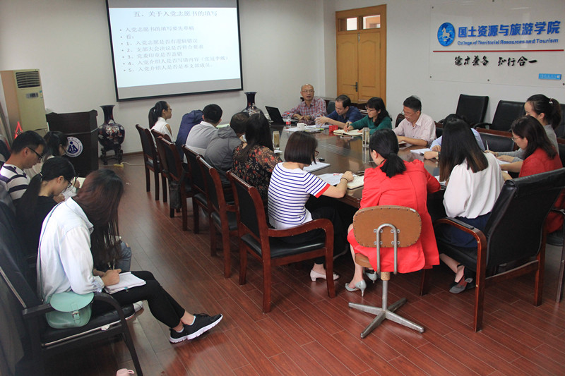 本网讯(国旅学院 施华转)为进一步准确把握新修订的《中国共产党发展党员工作细则》总体要求,明确发展党员工作的标准、程序和纪律,全面推动新形势下发展党员工作。10月10日下午,校党委组织部正处级组织员胡培亮应邀为国旅学院党务工作人员开展题为《发展党员工作的几个问题》的专题辅导讲座。国旅学院各教工和学生党支部书记及支部委员参加了讲座。讲座由学院党委副书记乔静主持。