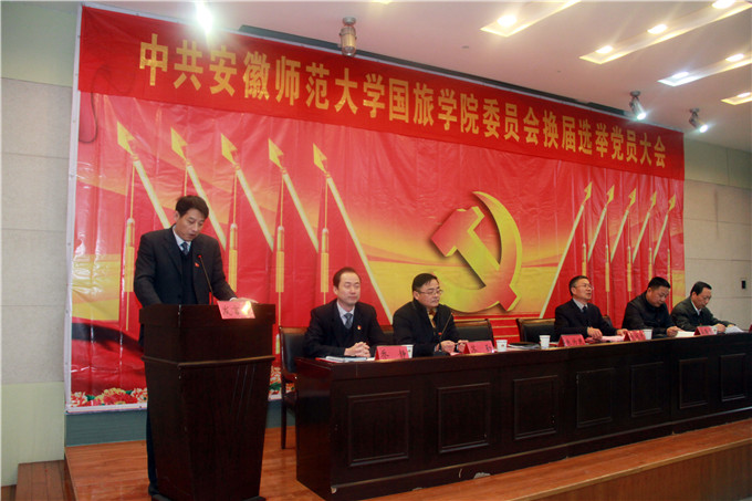 国土资源与旅游学院委员会换届选举大会在国旅学院实验楼101教室隆重举行。校党委组织部副部长、人事处处长朱为民,国旅学院党委原书记、校审计处处长吴春雷,国旅学院党委原副书记、校基建处副处长罗振及民主党派和无党派人士应邀出席会议,学院全体教工和学生党员共计146名正式党员和46名预备党员参加了会议。大会由国旅学院院长苏勤主持。