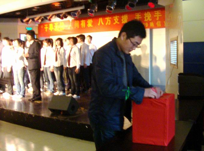 积极响应校团委号召,动员广大青年学生为西南灾区募捐,激发青年大学生的社会责任感,3月31下午3时,在大学生活动中心多功能厅,由09级地理信息系统专业承办的“大旱无情,人间有爱,八方支援,手挽手”慈善晚会隆重举行,并取得了圆满成功。