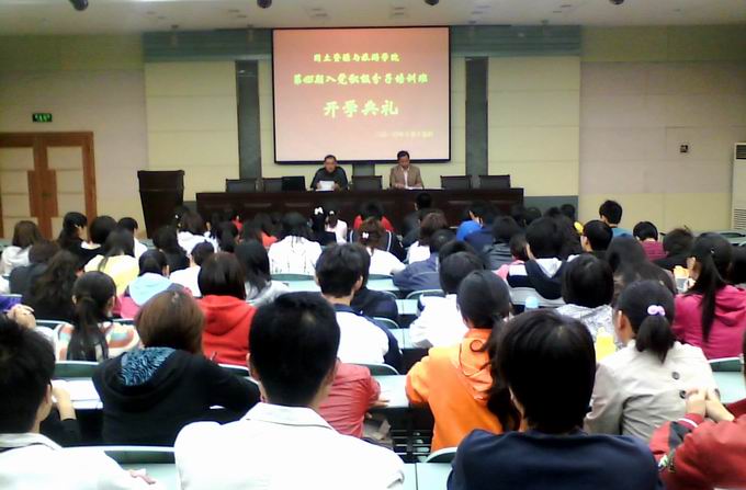 1015日下午,国旅学院在该院实验楼101教室举行了分党校第45期入党积极分子培训班开学典礼。典礼在一曲《没有共产党就没有新中国》的合唱中拉开帷幕,学院党委副书记罗振、分党校班主任及培训班全体学员参加了开学典礼。