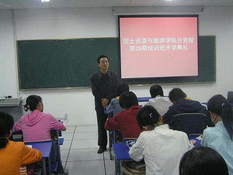 10177时,国旅学院在实验楼201教室举行第39期大学生入党积极分子培训班开学典礼。校党委组织部副部长、党校常务副校长季爱新,院党委书记、分党校校长李忠出席了典礼。