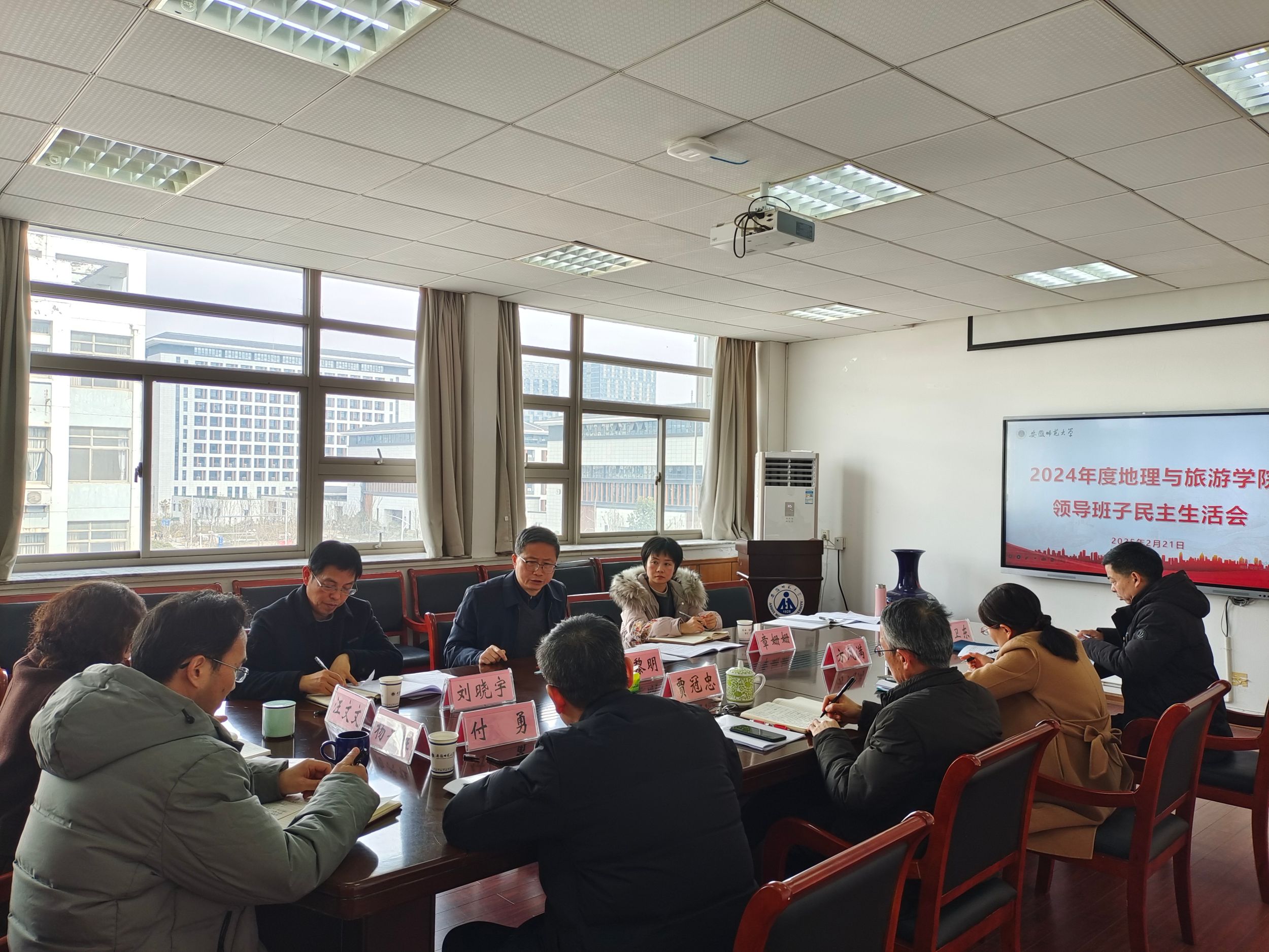 2月21日上午,按照中央省委统一部署以及学校工作要求,地理与旅游学院党委在四楼会议室召开2024年度民主生活会。学校党委常委、副校长曾黎明出席会议并讲话统战部常务副部长刘晓宇、人事处秘书章姗姗列席会议。学院党委委员参加会议,会议由院党委书记贾冠忠主持。