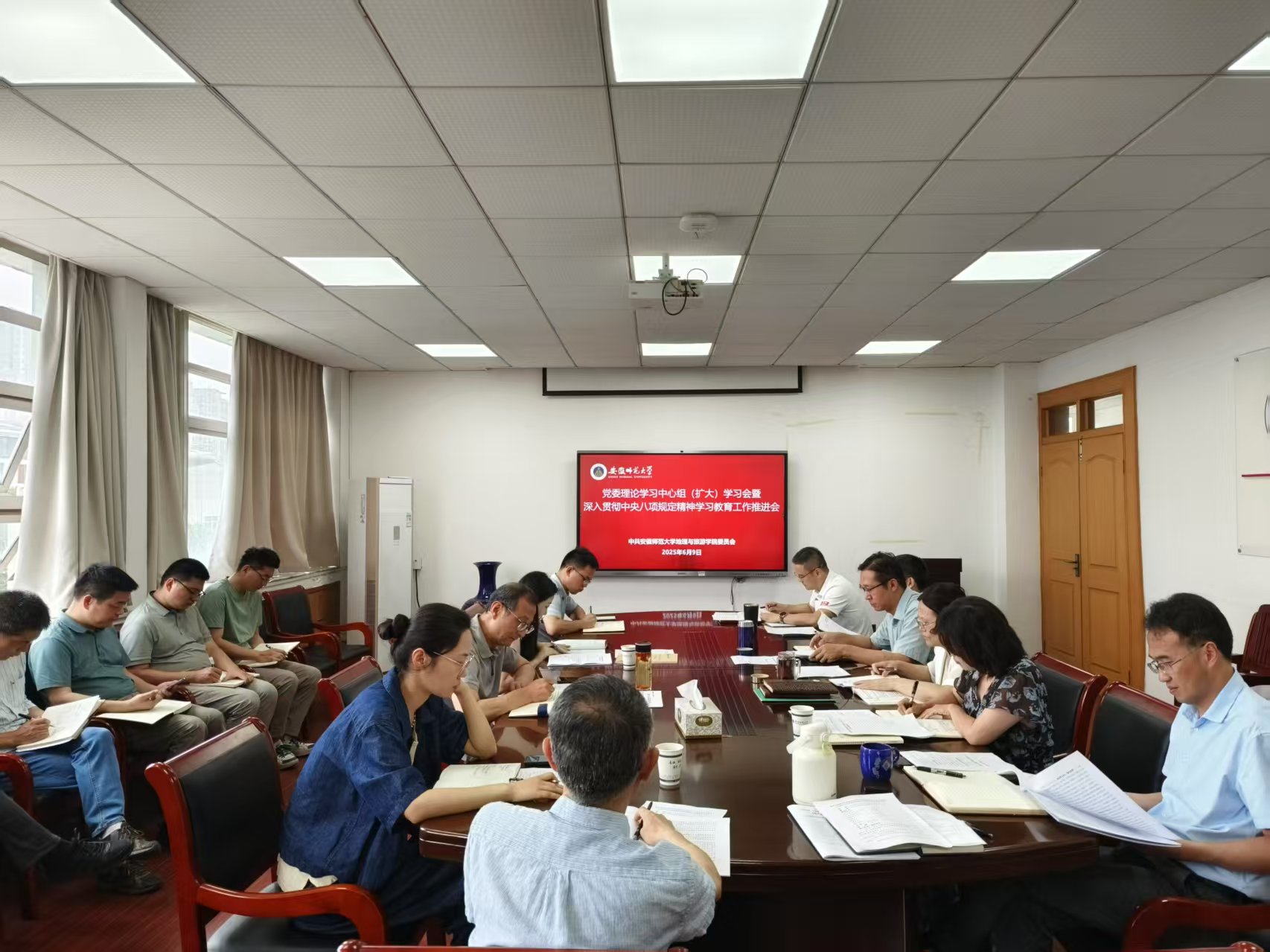 在四楼会议室召开党委理论学习中心组(扩大)学习会,深入学习贯彻习近平总书记关于作风建设的重要论述,研究部署学院党风廉政建设和作风建设工作,推进深入贯彻中央八项规定精神学习教育工作。院党委委员、各党支部书记参加会议,马克思主义学院正处级组织员王学灵、新闻与传播学院党委秘书兼组织员张雁列席旁听。院党委书记张顺主持会议。
