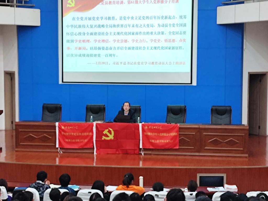 分党校第10期学生党员教育培训班、第61期大学生入党积极分子培训班在敬文报告厅继续进行,学院党委副书记乔静以“在学好党史中筑牢初心使命”为题,围绕党史学习教育,为学员们讲授专题党课。第10期学生党员、第61期大学生入党积极分子参与了此次培训班。