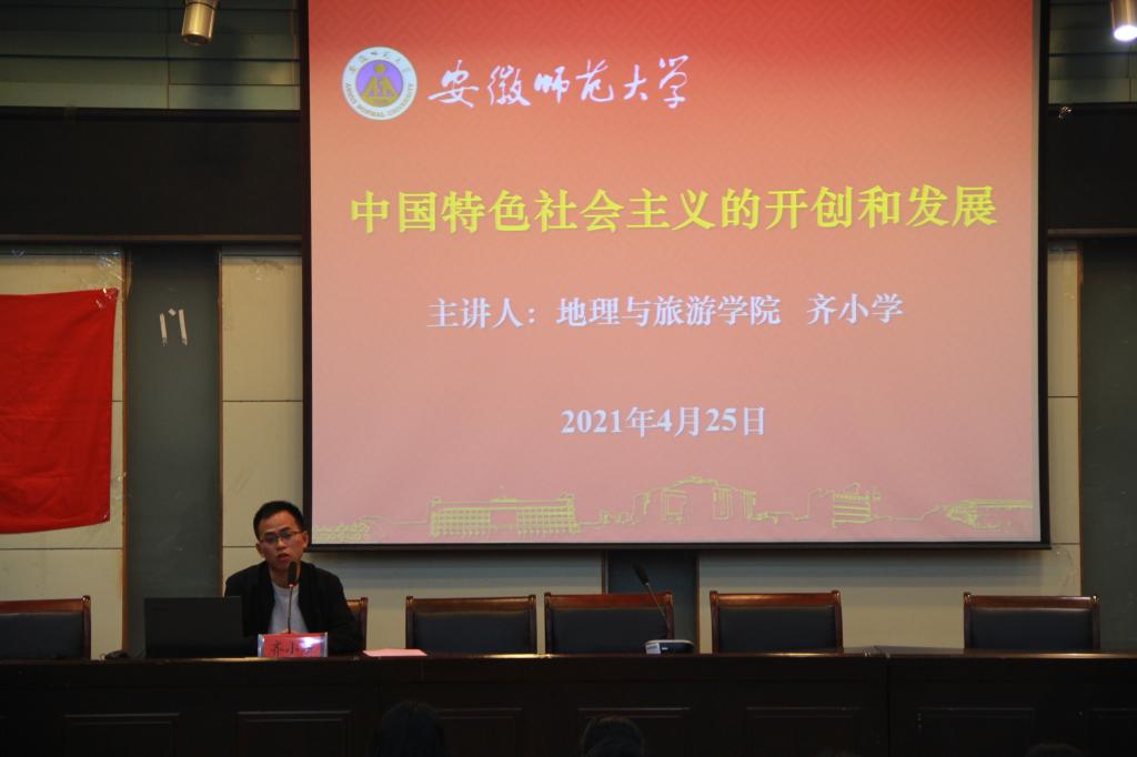 开班式结束后,地理本科生党支部书记、辅导员齐小学作党史学习教育专题辅导报告。报告讲述了中国特色社会主义的开创和发展,介绍其背景、过程及影响,并指出不同时期国家领导人在中国特色社会主义开创发展上的伟大贡献。本次党史教育更加坚定了同学们民族自信心和民族凝聚力。