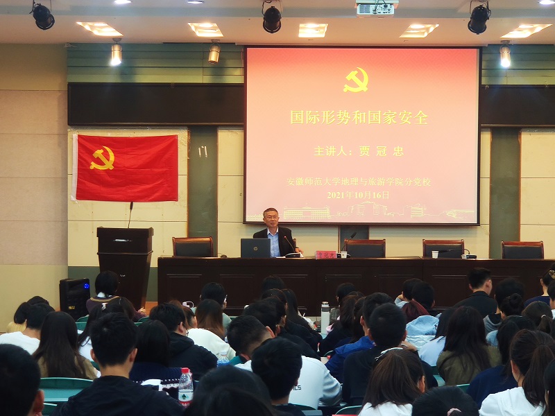 稍后,贾冠忠为学员们进行第一次授课《国际形势与国家安全》。贾冠忠立足于形势、国际形势、人类命运共同体的概念,对目前的国际形势做出分析和展望,指出世纪疫情和百年变化交织给人类带来深远影响,未来国际形势风险叠加、更加复杂。贾冠忠强调,所有同学要增强国家安全意识,为维护国家安全做出应有的贡献。