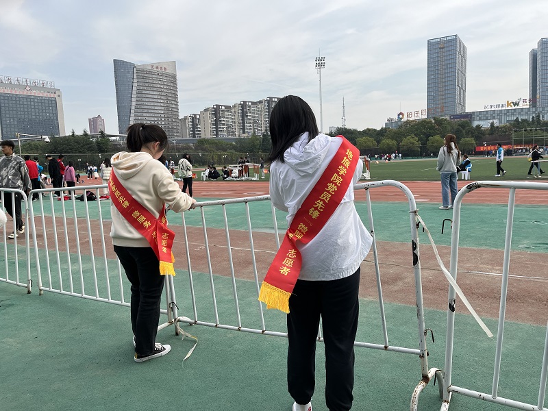 同时,学员们也时刻关心运动员们的身体状况,积极为他们递水和葡萄糖,帮助调整他们的心理状态。在熙来攘往、热火朝天的操场上,学员们红色的身影和她们脸上洋溢的笑容成为了一道亮丽的风景。