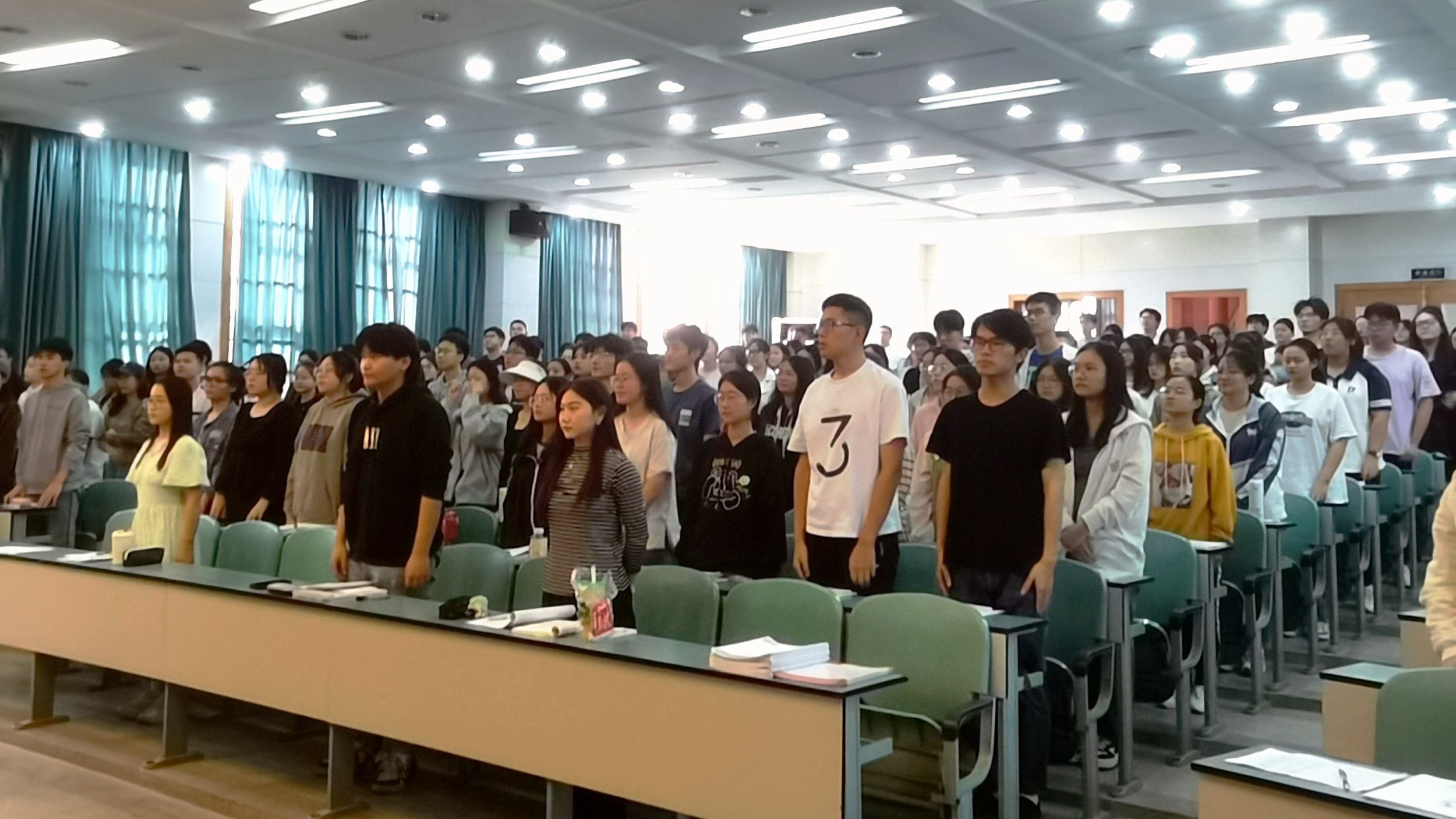 分党校第15期学生党员教育培训班和入第66期大学生入党积极分子培训班在学院实验楼101报告厅举行开班仪式。院党委副书记付勇、分党校班主任王美、副班主任操晶晶以及培训班全体成员参加。仪式在庄严的国歌声中拉开帷幕,王美宣读了《关于做好色情动漫