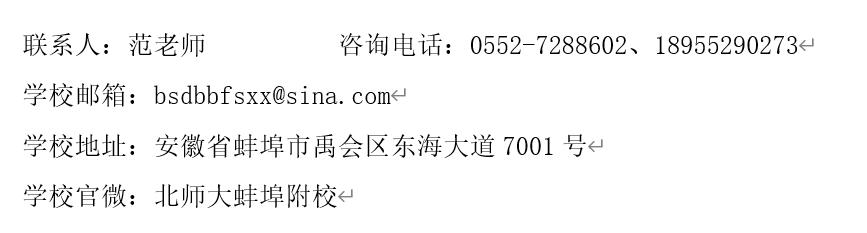 北京师范大学蚌埠附属学校是由北京师范大学、蚌埠市人民政府、泽融(福建)投资发展有限公司三方,按照“政府主导、体制创新、协议管理、自主办学”原则合作创办的一所非营利性体制创新型优质教育资源学校。学校地处大禹故里蚌埠市禹会区,按照高于国家标准建设,依山而建、环境优美、设施齐全、条件优越,办学定位高端,小班化、特色化、国际化,高规格、高质量、高品位。学校2014年9月正式开学,至今连续三届高考一本二本达线率均居全市前茅,家长对学校在学生考试成绩和健康成长、生活服务和安全管理、软硬件办学条件改善和师德建设等诸方面都非常满意,理想的办学成绩赢得了良好的社会声誉,目前有近万名学生,近千名教师员工。