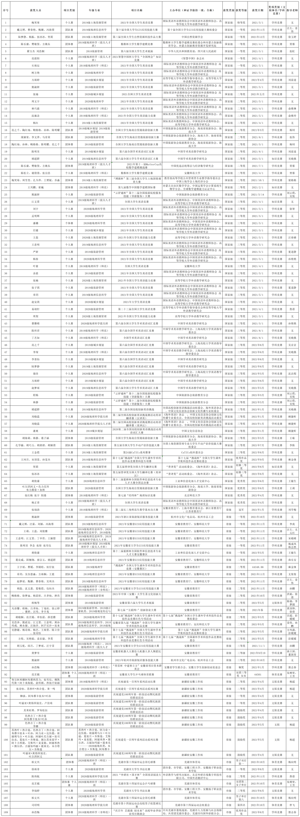 2021年色情动漫 学生获奖情况