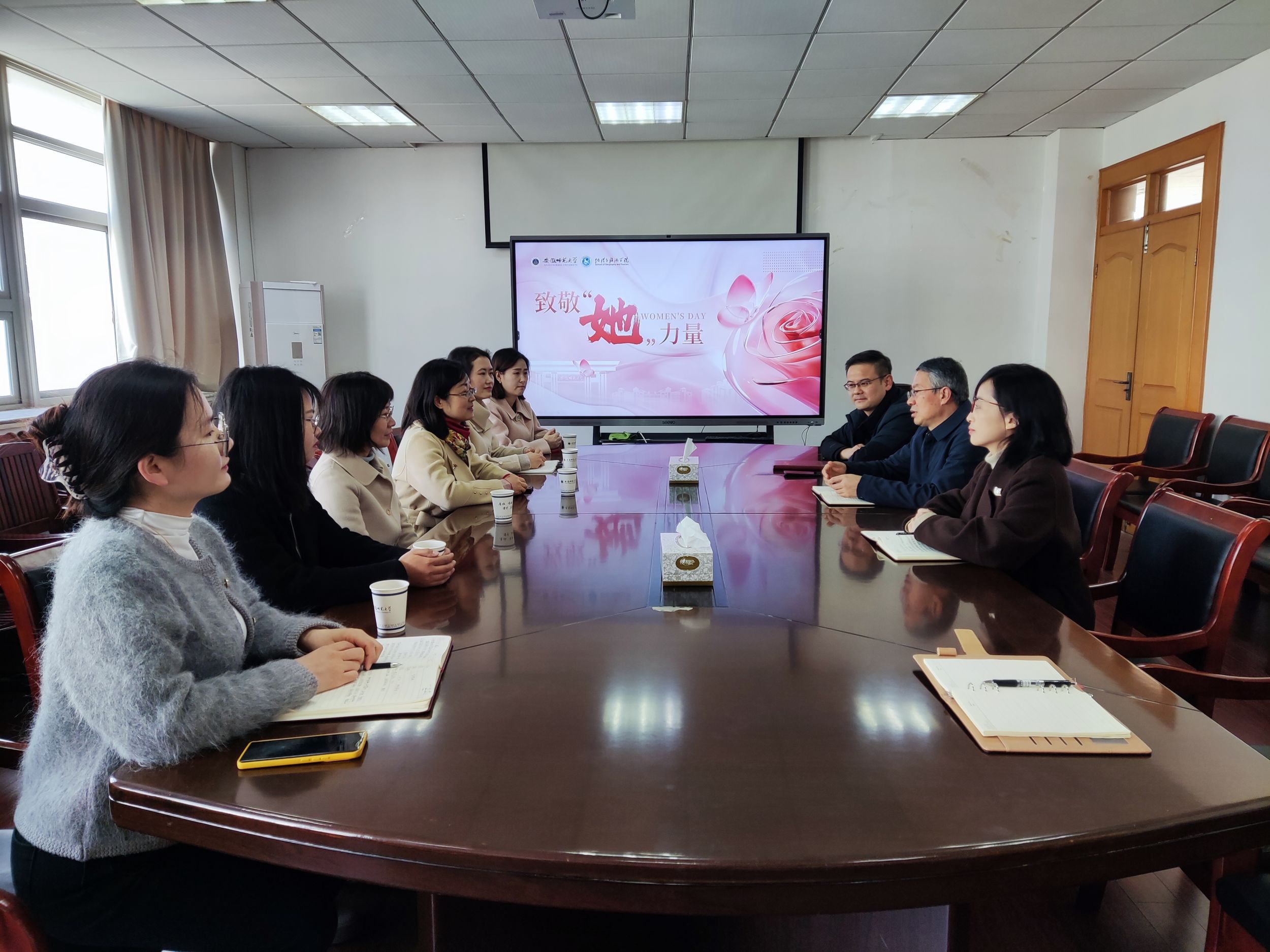 致敬“她”力量三八妇女节慰问女教职工的活动在学院会议室温馨举行。学院党委书记贾冠忠、党委副书记付勇、行政副院长汪文文和女教职工代表参加活动。活动由汪文文主持。