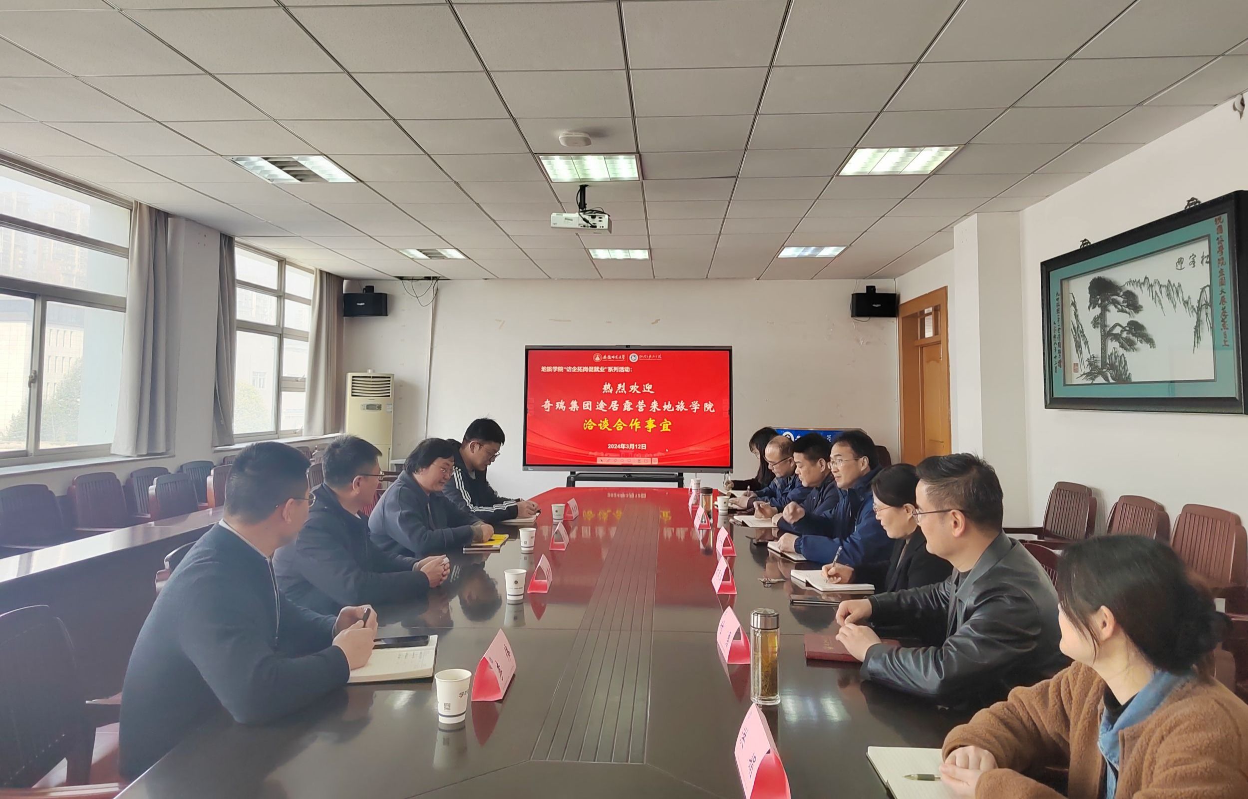 与途居露营投资管理股份有限公司在学院三楼会议室举行校企合作交流会。奇瑞控股集团招聘中心主任李伟,途居露营投资管理股份有限公司总经理钱奕安,人事总监司琪,综合部部长乔启明,色情动漫