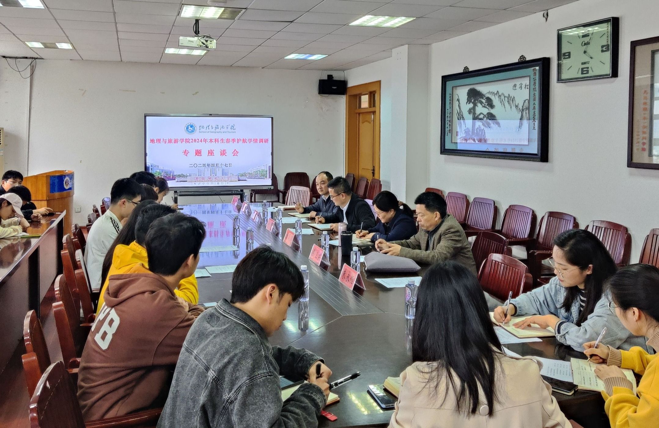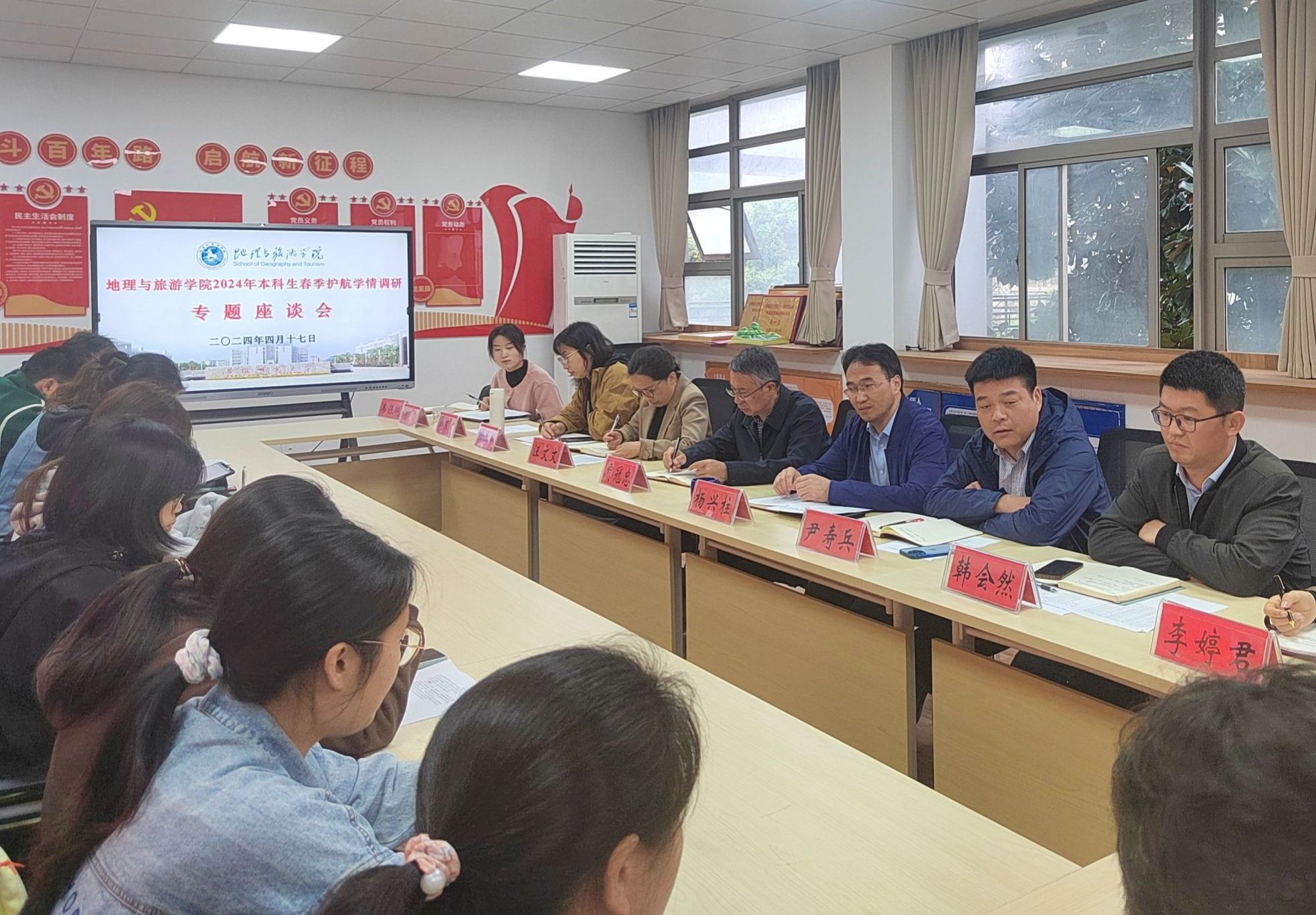 召开学生工作委员会会议暨春季护航学情调研专题座谈会,座谈会根据专业分为地理地信、旅游土地城规两个分会场。学院学生工作委员会教工委员、学生委员以及班级学生代表按专业分会场参加座谈会。