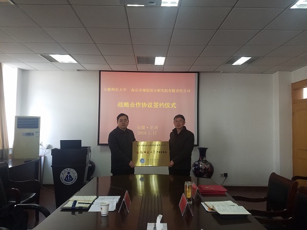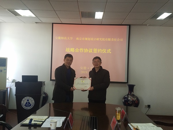 与南京市规划设计研究院有限责任公司战略合作协议由程茂吉院长、苏勤院长共同签署。