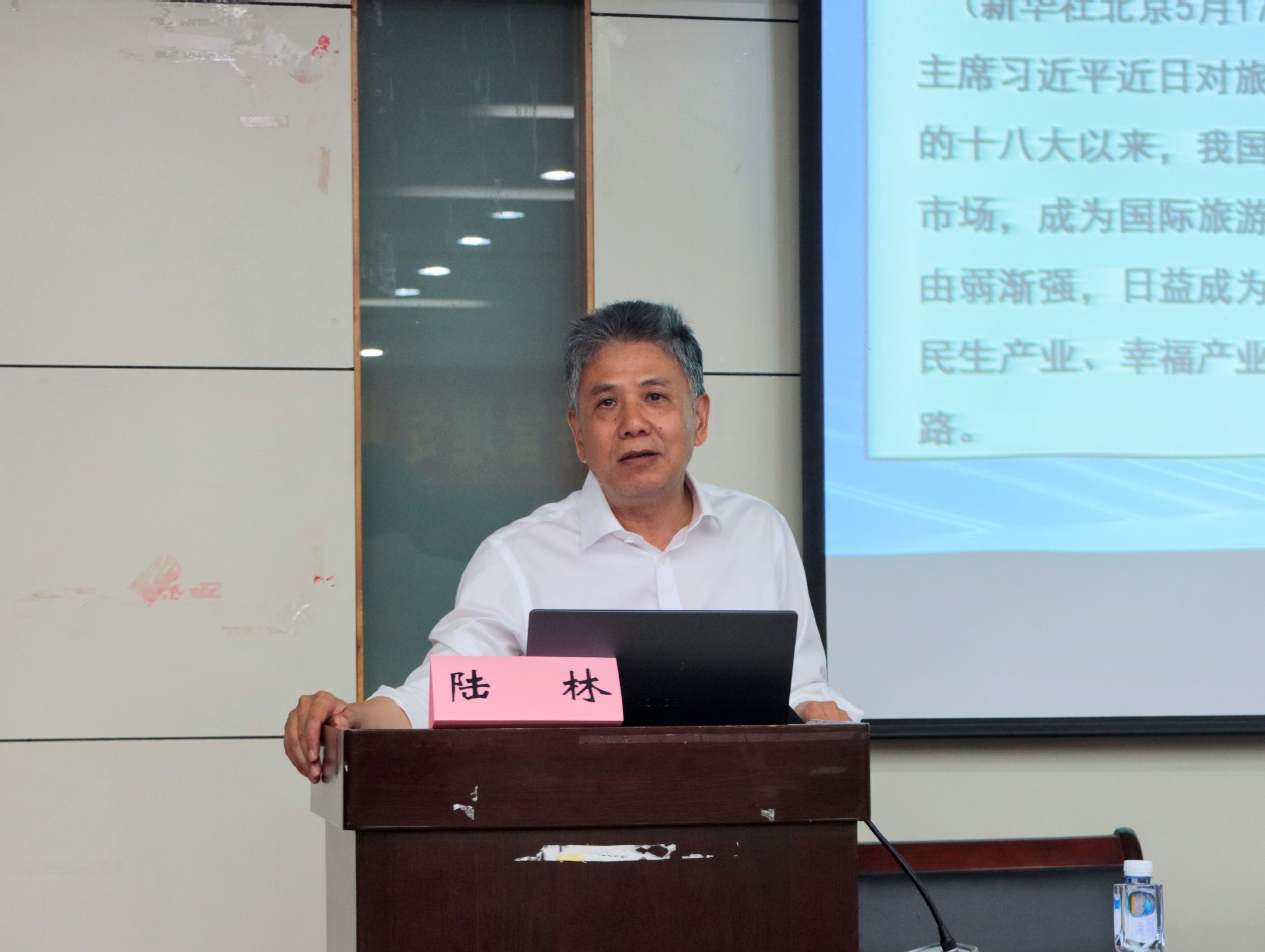 崔光磊致辞时强调“学而不思则罔,思而不学则殆”。大讲堂为本科生提供了“学”和“思”的平台,希望同学们能够“享”受“学和思”后的获得感。随后,陆林领学了习近平总书记近期对旅游工作作出的重要指示。
