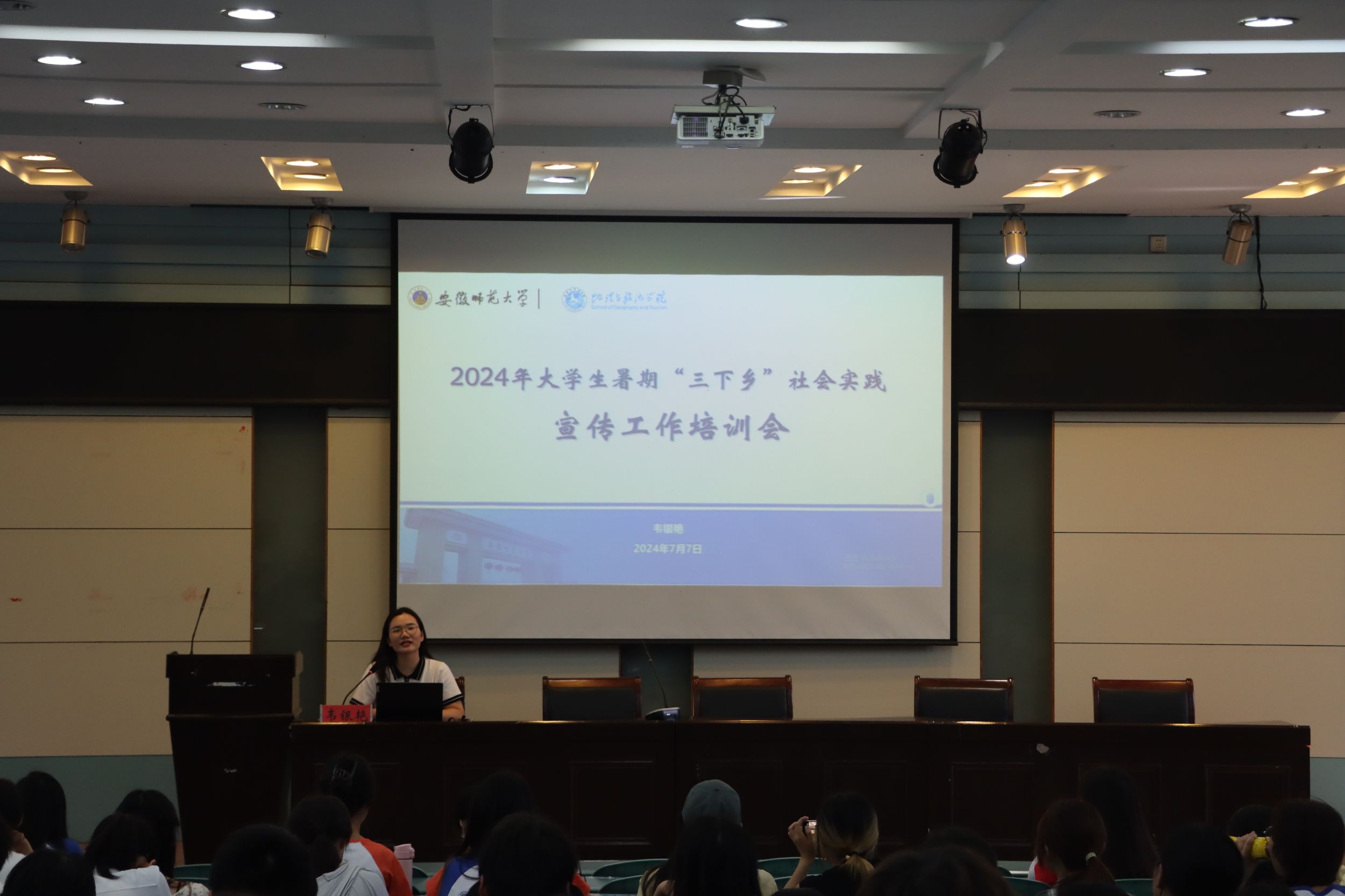 团委为学院2024年全体暑期社会实践学子开展暑期社会实践安全培训和新闻宣传培训会。培训会由团委书记韦银艳主讲。