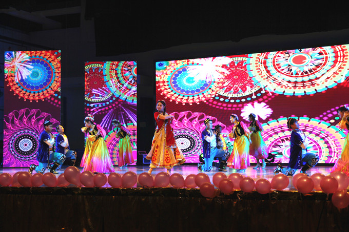 时代律动,中国节拍,青年矢志,初心不改。歌伴舞《中国节拍·震动世界》中,来自学院各专业的青年学子步履如飞,四面八方汇聚舞台,曼妙舞姿点缀的舞台中央,侯永康老师与丁寅同学此唱彼和,响遏行云,恰显青年风华正茂,高歌震动世界的“中国节拍”;歌曲联唱《映山红》《当你老了》《最美的期待》《明天会更好》,副院长曹卫东携陈瑞菲、徐飞扬、孙雯杰、汪岩等同学唱响时代声音,师生用悠扬的歌声抒发对祖国发展的自豪与骄傲,表达对新时代的赞美与热爱;相声《手机狂想曲》从同学们的真实生活出发,语言诙谐,笑侃“低头族”现象,谈笑间发人深思;爵士舞《Red Jazz》旋律动感,舞蹈活力四射,张扬青春,引爆全场。