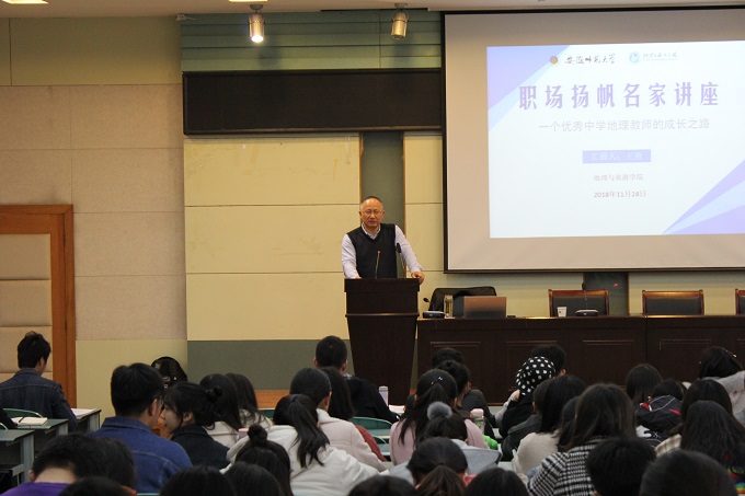 85级优秀校友王勇应邀作了题为“一个优秀中学地理教师成长之路”的讲座。讲座由副院长方凤满主持,地理科学专业本科生列席聆听。