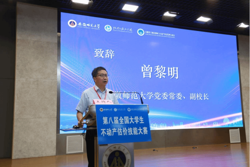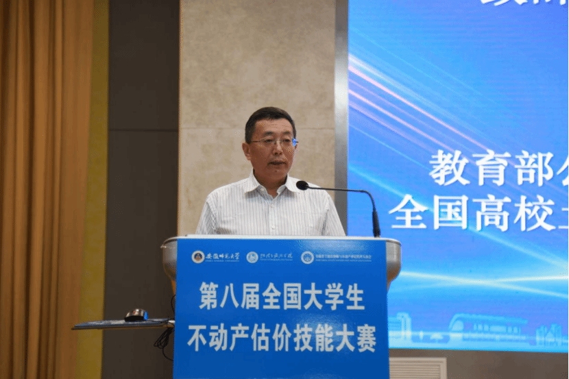 致辞,他对第八届全国大学生不动产估价技能大赛开赛表示热烈祝贺,向所有嘉宾和参赛师生表示诚挚欢迎,并简要介绍了我校的基本情况和色情动漫