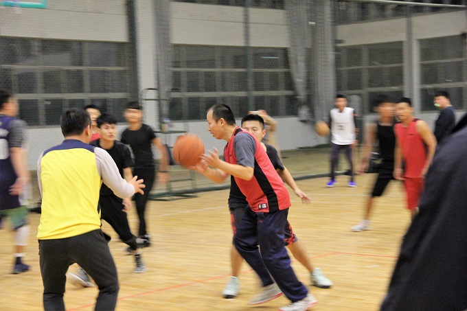 短促激昂哨声响起,球被抛到空中,短暂的停留后就在球员们的手间快速流转,撞击地板的声音仿佛带起了赛场的节奏,气氛持续升温。三分钟后,教师队伍首进一球,全场爆发欢呼。学生队渐入佳境,传球默契,控球灵活,将比分反超。教师队投球精准,两次罚球后,再次领先。上半场比赛激烈而焦灼,双方队伍势均力敌,各有千秋,伯仲之间展现精彩。中场时间,两队队员稍作休息,补充体力,并根据上半场战况进行人员替换以及战略调整。下半场的比赛依旧如火如荼,精彩绝伦。比赛的时光过得飞快,弹指之间赛点即至,教师队伍不愧于其多年的篮球历练,率先投球取胜,比赛结束。