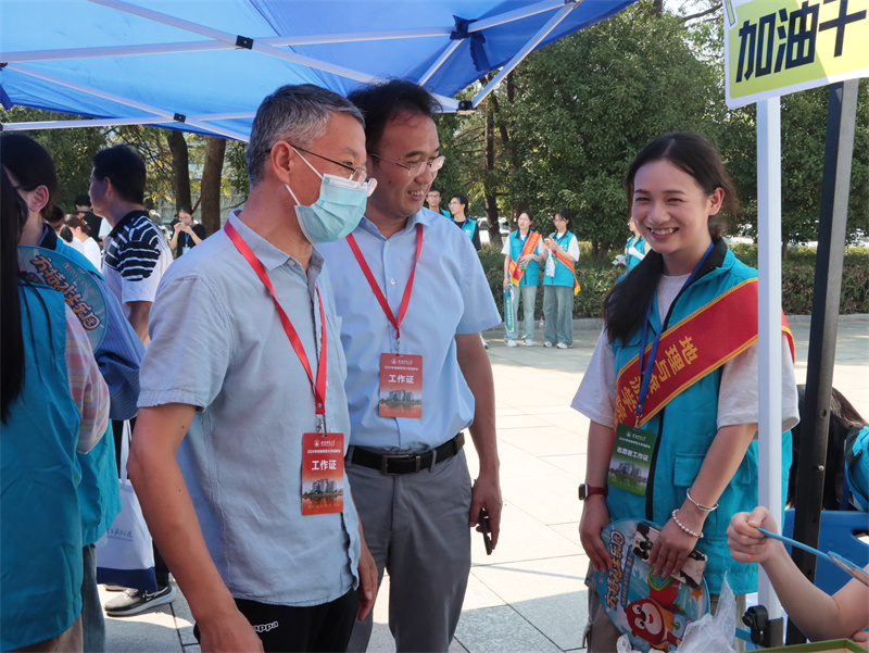 的迎新活动正式拉开帷幕。校园内,身着统一制服的志愿者们,如同一道亮丽的风景线,穿梭于人群中,为新生和家长答疑解惑,提供指引,他们的微笑与热情,为初入校园的学子们送上了第一份温暖。迎新现场,茶艺表演成为一大亮点,茶香袅袅,乐声悠扬,为紧张的迎新氛围增添了几分雅致与和谐。新生们在欣赏表演的同时,也感受到了学院文化的独特魅力。校党委书记张立驰、校长李亚栋等校领导和学院党政领导莅临迎新现场关心报到情况并与新生们亲切合影。此外,学院特别设立了照片打印区,新生与家长可以在此留下珍贵的合影,将这份初入大学的喜悦永久定格。