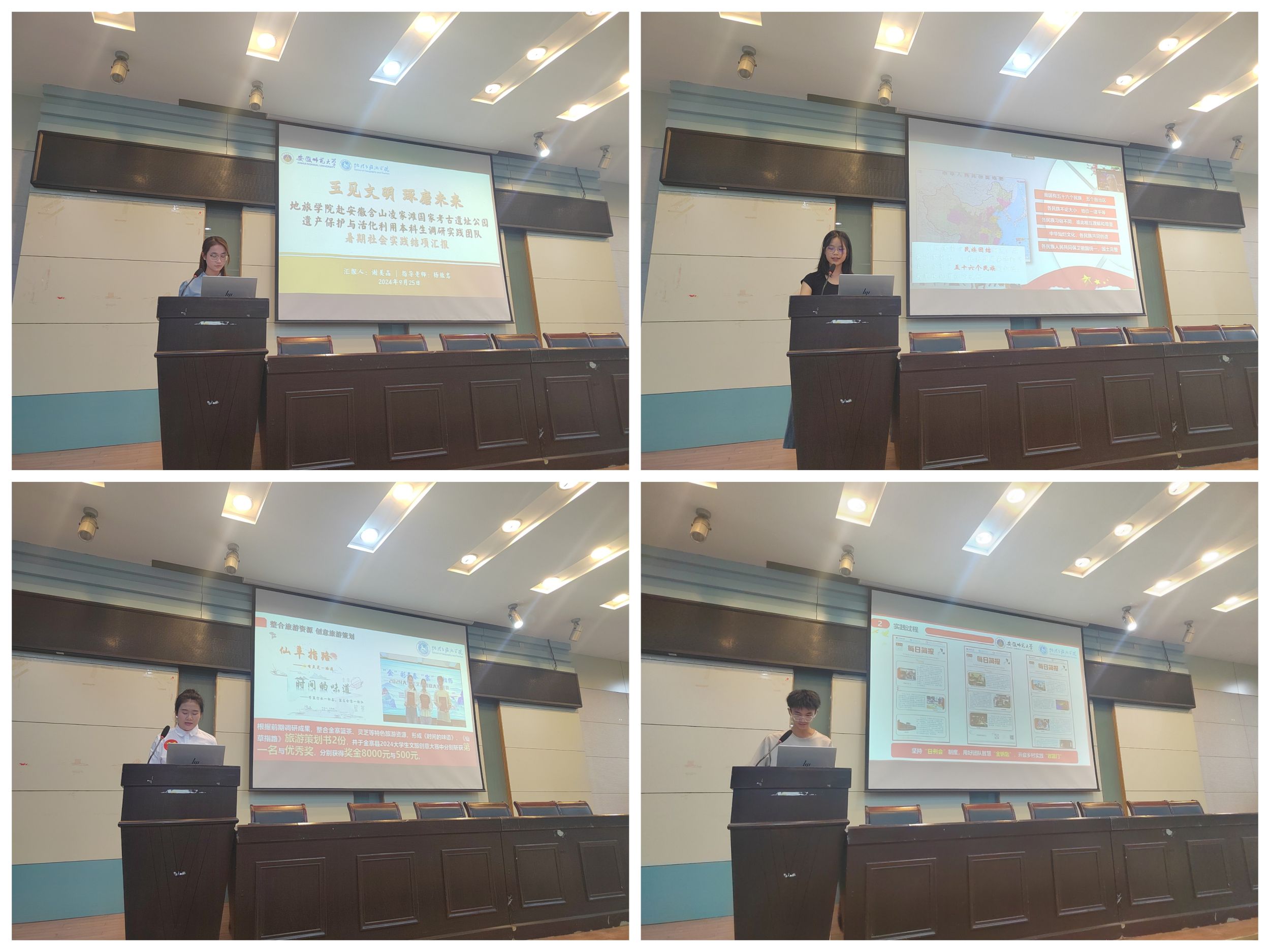 小流域“国土资源开发保护”调查研究暑期社会实践团队在朱永恒老师的指导带领下,对芜湖市南陵县楂林冲小流域进行全面调查,并提出土地与道路应合理开发利用的优化建议。情系川皖·圆梦巴蜀山区留守儿童支教团以“蜀约·暑约·述约”为题讲述17年的支教故事;“玉见文明,琢磨未来”赴安徽含山凌家滩国家考古遗址公园遗产保护与活化利用本科生调研实践团队着力于凌家滩考古旅游发展,传播华夏玉文化,计划打造集乡村旅游文化创意生态农业于一体的综合性乡村振兴与文化创意示范区。