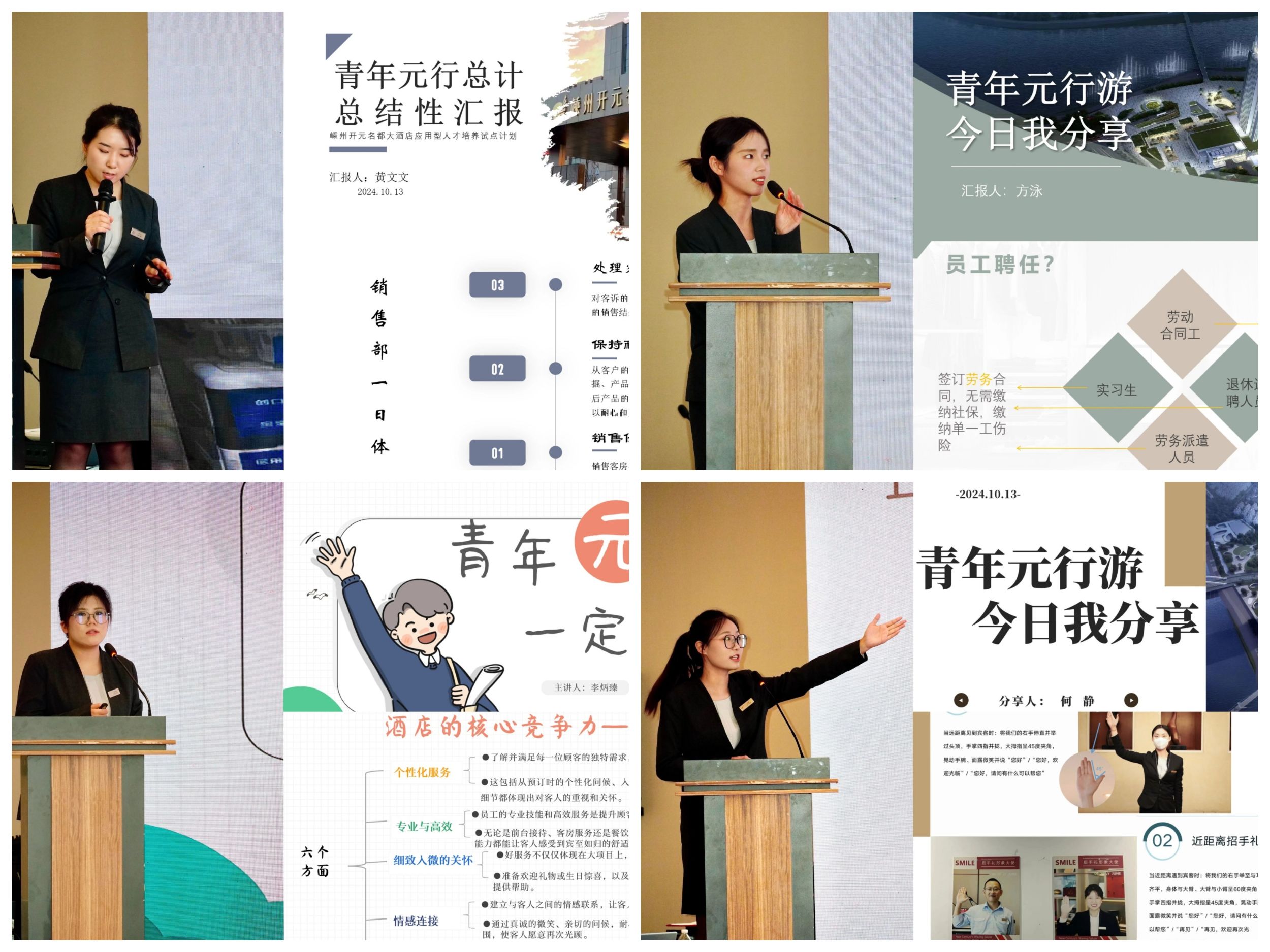 从9月初中旬启动招募开始,嵊州开元名都酒店总经理、人资总监亲自到校开展招聘宣讲,与学院座谈交流计划内容,学院积极动员同学们提交简历,随后,嵊州开元名都大酒店根据“职业发展、管理思维、新媒体意识、性格测试”等四个维度开展综合选拔,最终五位同学顺利“成团”。