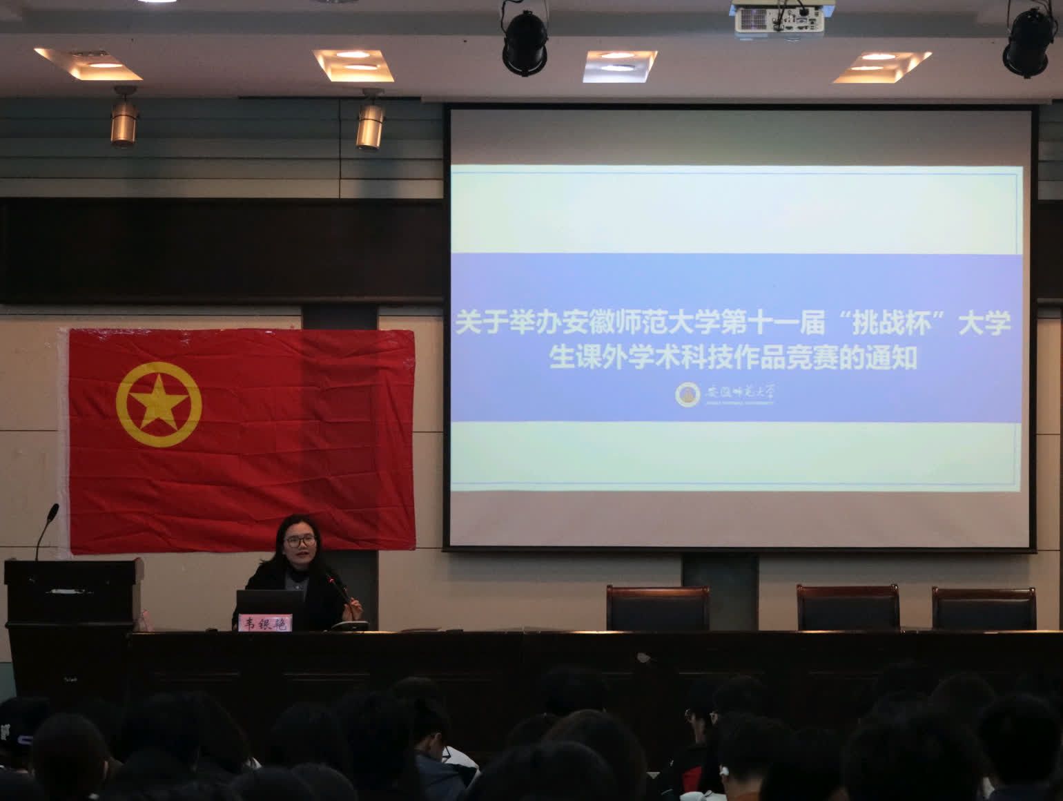 韦银艳以第十一届“挑战杯”大学生课外学术科技作品竞赛为例,讲述了大学竞赛的相关信息,深入浅出地剖析了学科竞赛对于提升学生专业能力的重要性,引发了在场学生的热烈反响。接着,她以《团学骨干网络文明素养提升培训》为题,做出团学骨干网络文明和新闻宣传素养的培训,学员们对网络文明建设有了更深刻的认识,新闻宣传技能也得到了提升。