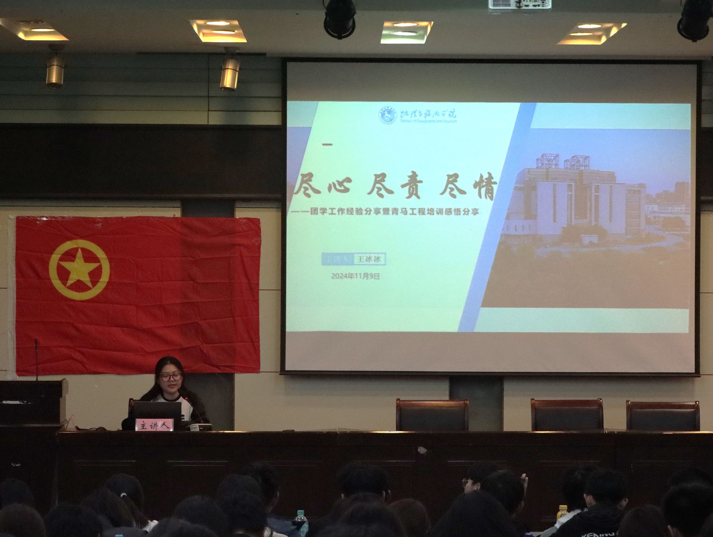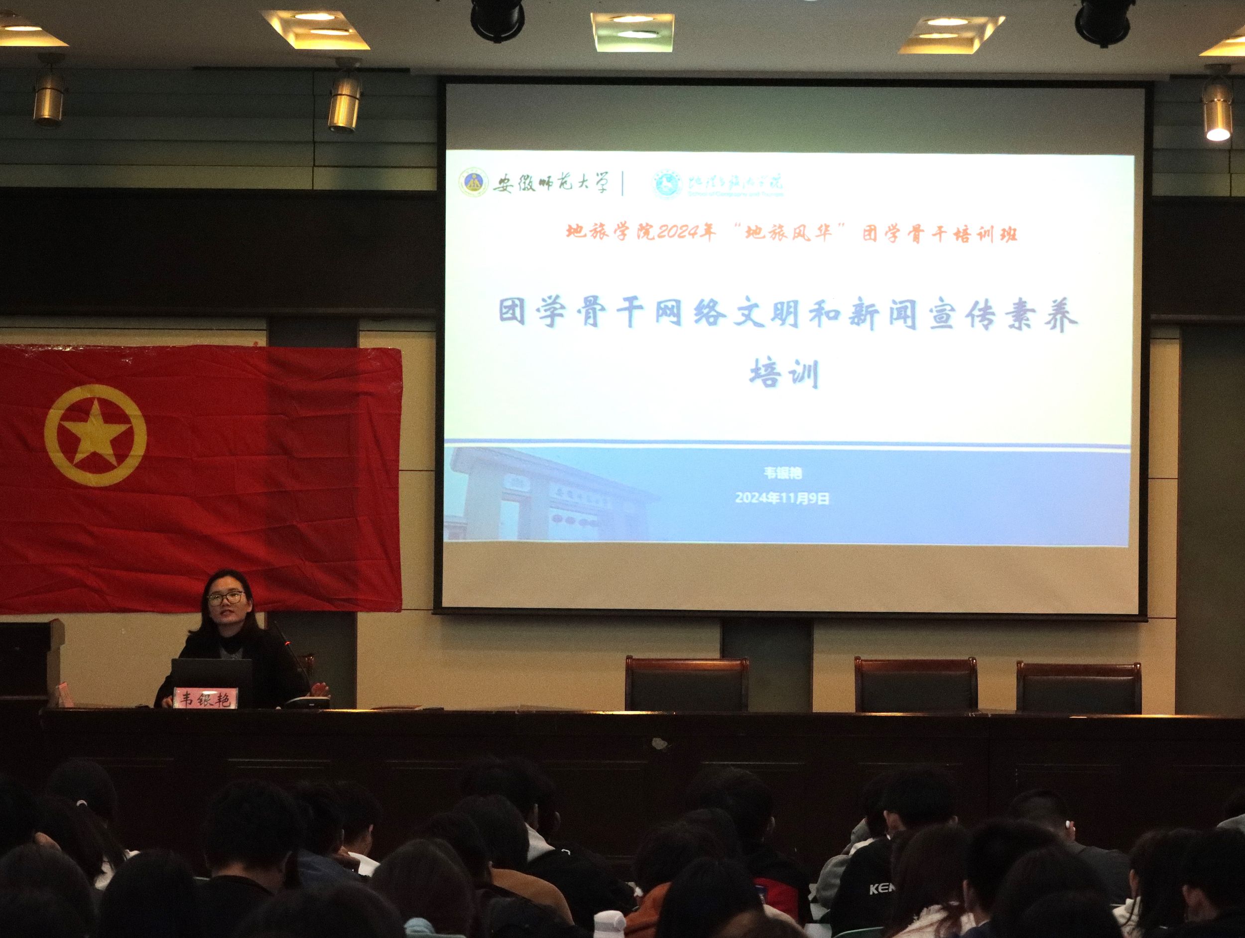 举办了 2024 年“地旅风华”团学骨干培训班。党委副书记付勇、院团委书记韦银艳、院团委副书记吴文涵出席此次开班仪式,院团委、学生会骨干、各班级主要学生骨干代表参与培训学习。