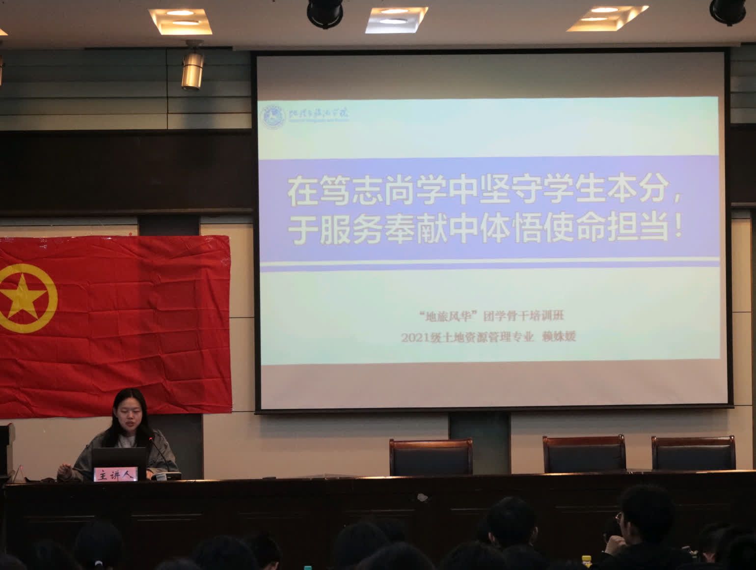 学院还要邀请了2021级土地资源管理专业的优秀学生赖姝媛做了题为《在笃志尚学中坚守学生本分,于服务奉献中体悟使命担当》的报告,她从正视问题、改变态度、破解之策三个方面向团学骨干们讲述了如何平衡工作与学习。此外,学生会团委副书记王冰冰以《尽心、尽责、尽情》为题,分享了自己的团学工作经验和青马工程培训感悟,让团学骨干们感到受益匪浅。