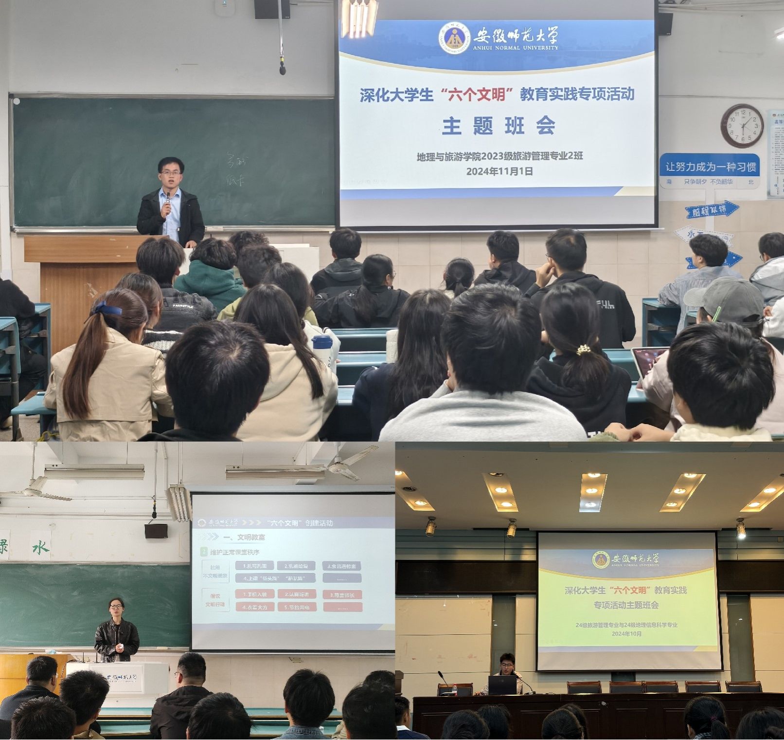 召开学生工作会议,专题研究如何深化大学生“六个文明”教育实践专项活动。会上详细解读了学校实施方案的主题、内容和要求,强调六个文明”教育实践专项活动是学校深入推进大学生护航行动计划的重要抓手,大家要把思想、认识和行动统一到学校的部署要求上来,结合学院特色、立足学生实际创造性开展创建活动,充分激发学生创建主体作用,让创建成效经得起实践检验,获得师生认可,真正成为护航学生成长成才的暖心工程。10月30日下午,学院召开全院教职工大会,深入学习习近平总书记考察安徽重要讲话精神,传达学习省委持续深化教育综合改革加快建设高质量教育体系的精神,专题部署本科教育教学审核评估工作,并就“六个文明”教育实践专项活动进行强调,要求全体教职工提高政治站位,以饱满热情和务实态度投入学院建设、发展之中,更好教书育人、护航学生成长。