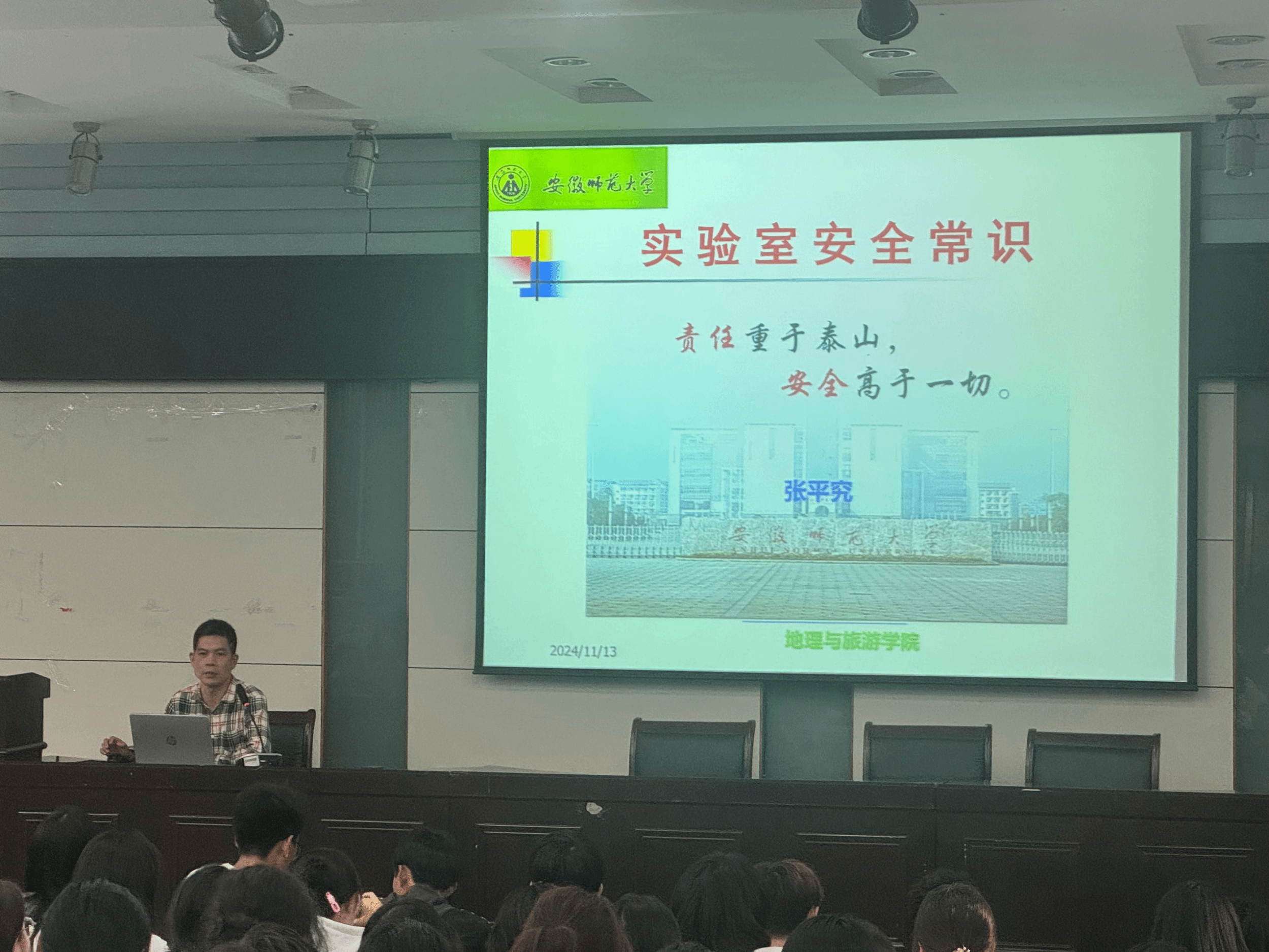 于11月13日下午在实验楼101开展实验室安全教育主题讲座。讲座由原校实验室安全督查组成员张平究教授主讲,学院副院长汪文文、实验员林跃胜以及2024级地理科学专业全体本科生和自然地理学专业全体研究生参加。