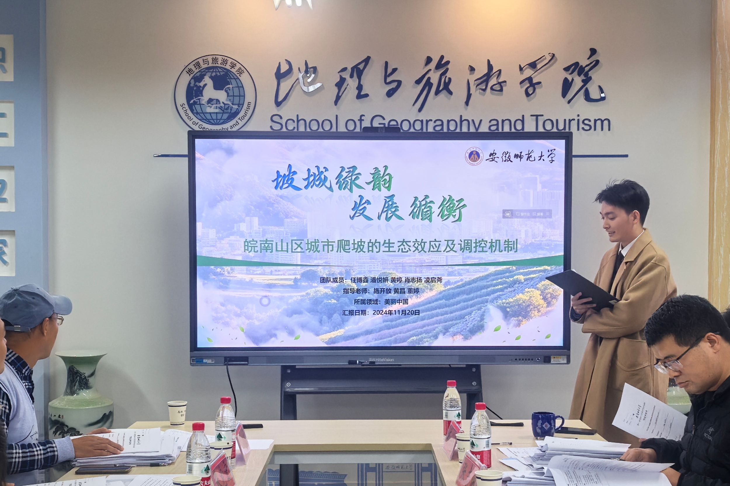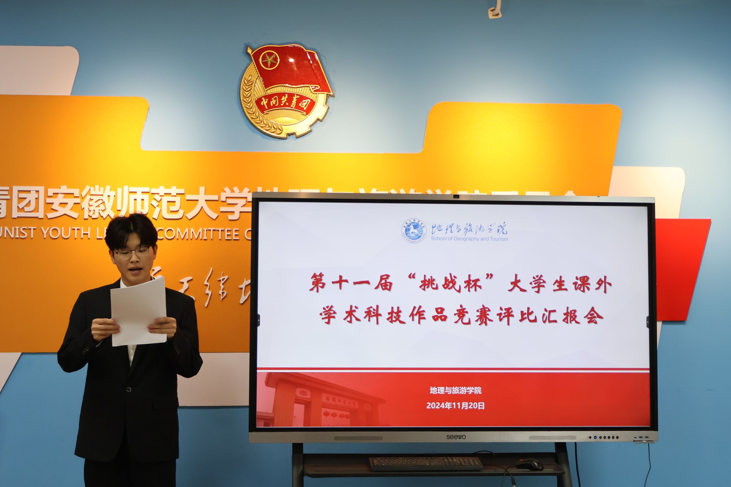 开展第十一届“挑战杯”大学生课外学术科技作品竞赛院级评比汇报会。学院党委副书记付勇,副院长杨兴柱,地理科学专业教师吴立、张志明、张宠宏,土地资源管理专业教师沈非,地理信息科学专业教师季青,城乡规划专业教师姚景艳及旅游管理专业教师洪学婷出席并担任评委。