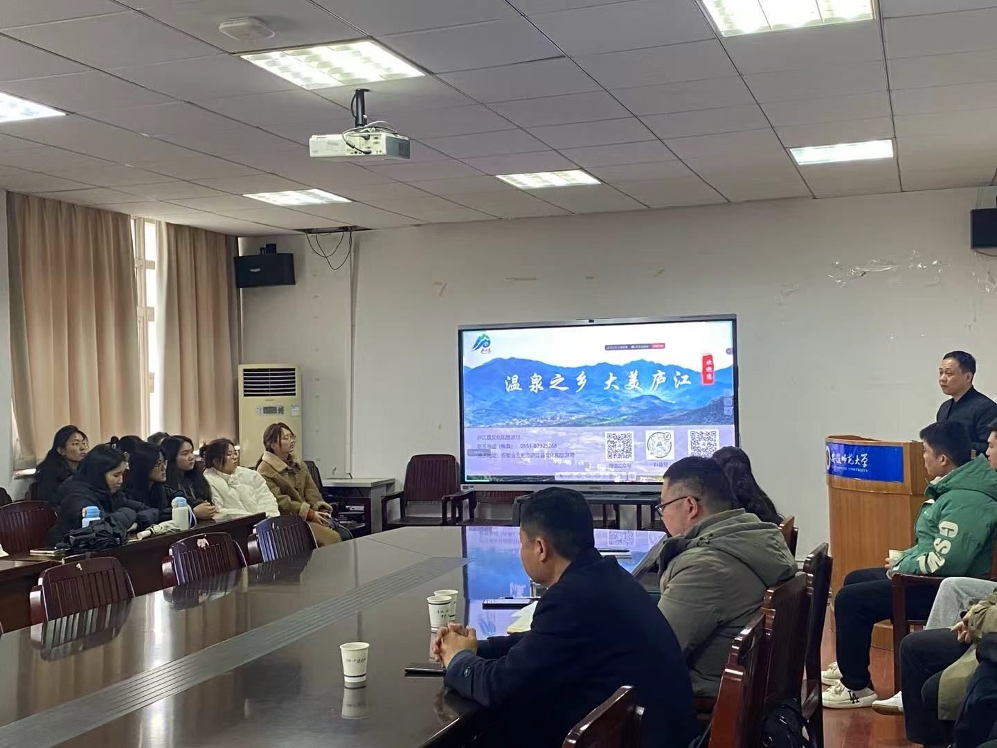 开展文旅人才专项座谈交流暨事业单位招聘政策宣讲会,学院院长方凤满、党委副书记付勇、旅游管理专业负责人尹寿兵、2025届毕业班和大三年级学生代表参与。