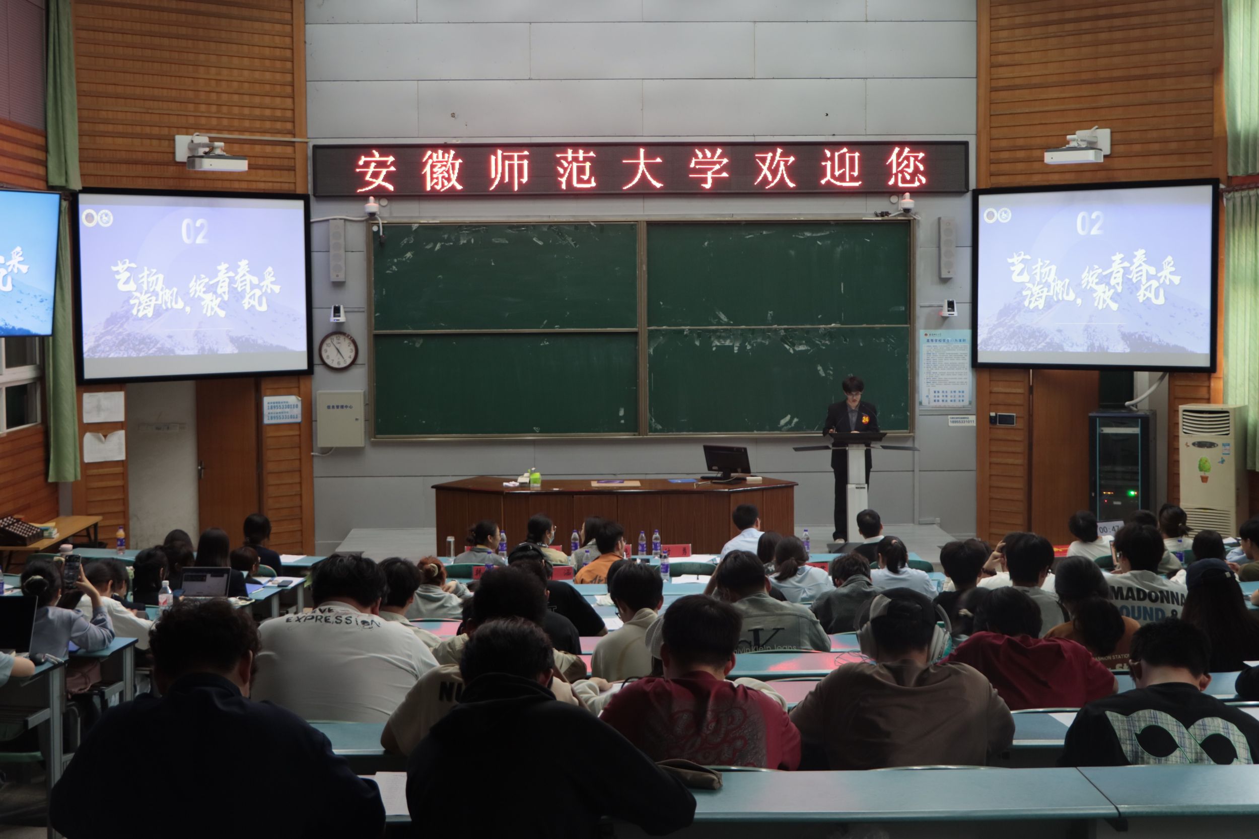 会议伊始,主持人简要介绍本届活动评选情况、评选环节以及评选要求。经过班团支部推荐参选,来自学院各个专业的24名学生脱颖而出,进入最终的评比汇报环节,参评学生按序上台汇报演讲,以PPT形式全方位展示个人事迹和荣誉。