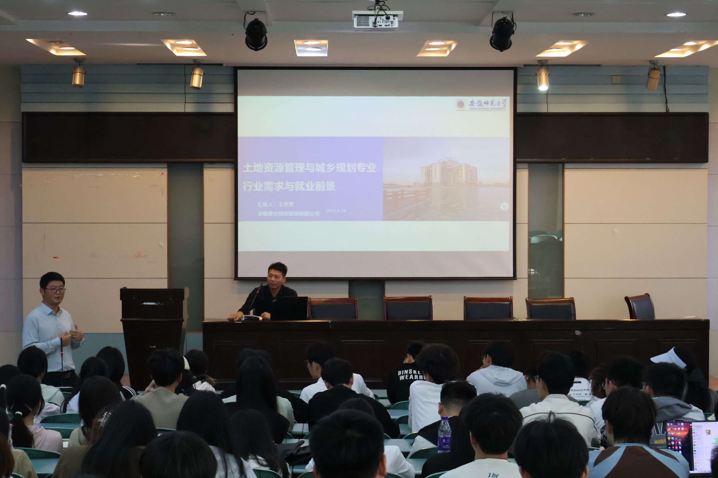 在实验楼101成功召开第七期“学·思·享”大讲堂,23、24级土地资源管理及城乡规划专业全体同学参与。本次讲堂聚焦于土地资源管理及城乡规划专业,核心目标在于深化学生对专业领域的认识,并明确指引学生未来的职业发展路径。