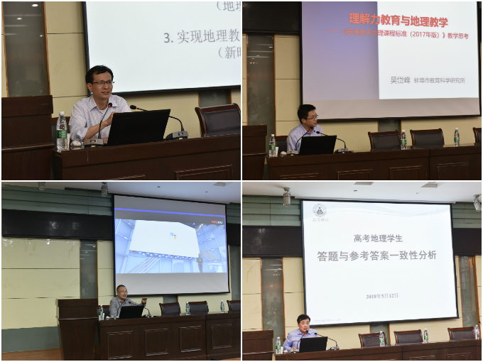 李俊峰老师作了“高考地理学生答题与答案一致性分析”的报告,分析了学生答题与标准答案有较大出入的原因及表现,并结合学生答题情况,提出了参考建议。