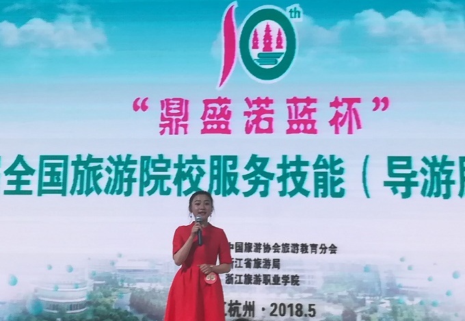 的四位参赛选手从开学初便开始认真准备,学院秉承“以赛代训、以赛促学”的专业素养培养理念,由王咏、吴悦、刘云霞等三位老师全程担任指导老师,围绕比赛的各个项目和细节进行全方位指导,与选手一同前往杭州比赛现场,给予专业指导,关心选手生活,帮助调节情绪。四位同学则从容应战,以专业娴熟的讲解、优雅从容的姿态获得评委组的一致好评。