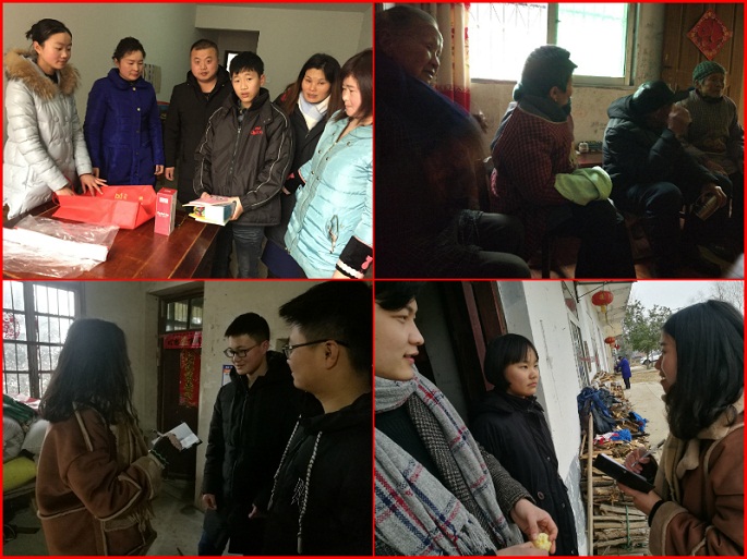 学生资助宣传大使,热心公益,在当地特困生扶持资金办公室的统一部署下,担任社区志愿者,开展以“春节慰问送温暖,关爱贫困儿童”为主题的慰问辖区贫困家庭儿童活动。宣传大使走访贫困儿童家庭,送去了慰问品、书包、笔、文具盒等学习用品,并与监护人交谈,了解贫困儿童的学习生活情况及面临的实际困难问题,并向他们宣传和提供学习了解资助政策的渠道,以身说法向他们介绍各种资助政策,帮助他们了解接受资助的条件、程序和益处,为他们答疑解惑,鼓励他们树立信心,好好读书,勇敢面对一切困难,乐观的学习生活。