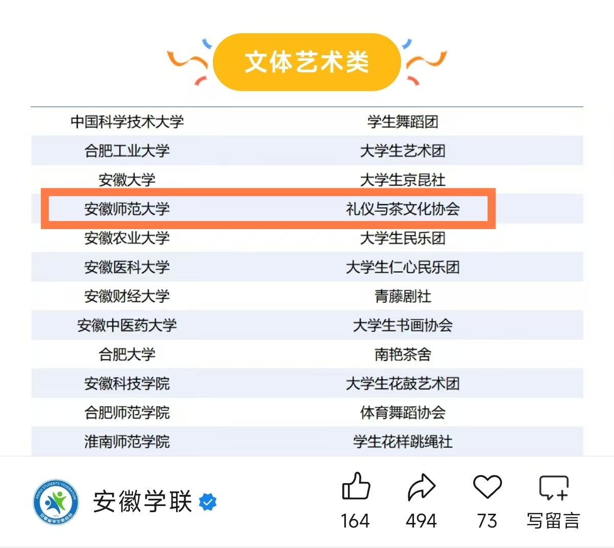 近日,安徽省高校“活力社团”评选结果揭晓,我校礼仪与茶文化协会凭借深厚的文化底蕴、鲜明的品牌特色与广泛的社会影响力,成功获评2024-2025学年安徽省“活力社团”称号,展现出社团建设的蓬勃生机与青春风采。