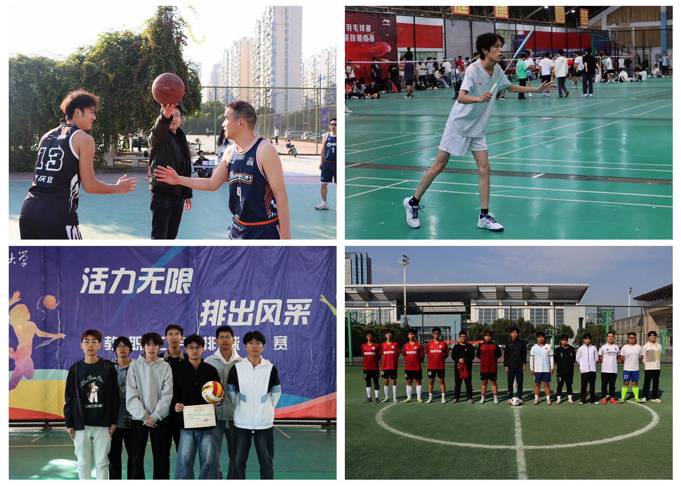 学生赛事中,参赛选手斗志昂扬、全力以赴。篮球场上,队员们攻守有度,传球精准、突破犀利、投篮稳健,比分紧咬时的顽强追赶赢得阵阵喝彩;排球赛中,起跳拦网、默契传垫、凌厉扣杀,一次次配合彰显协作的力量;羽毛球与乒乓球比赛中,选手们步伐灵活、战术多变,扣杀与防守间尽显专注与拼搏。各项比赛不仅展现了同学们良好的体育素养,更在对抗中磨砺了意志,增强了集体荣誉感。