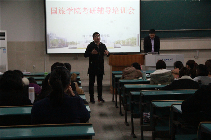 本网讯(国旅学院 徐童彤)一鼓作气备考研,名师指导冲佳绩。2017年11月27日晚,国旅学院在行知楼2010507教室举办考研培训会。特邀清华大学博士、数学考试大纲唯一指定解析人——陈剑老师给同学们做考研辅导培训,50余位相关专业考研学生参加此次活动,培训会由国旅学院辅导员赵将主持。