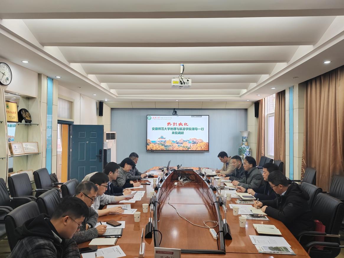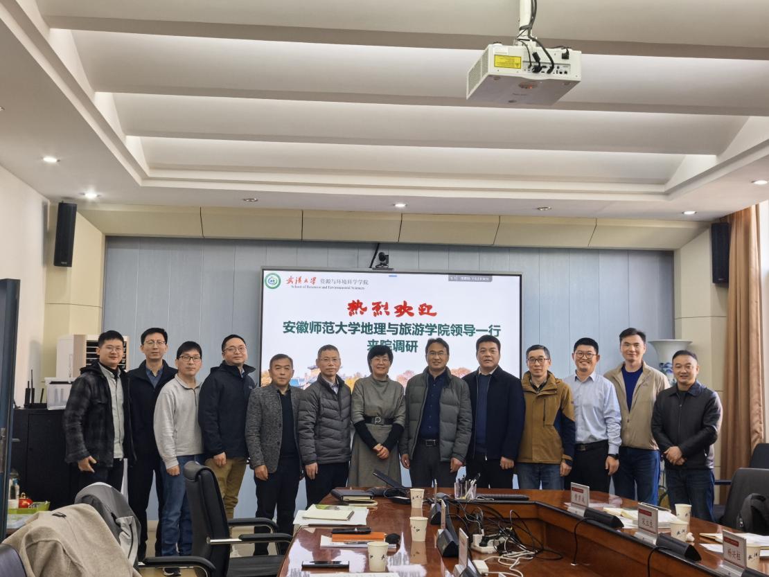 杨兴柱副院长及各专业负责人一行赴武汉大学开展调研交流,武汉大学资源与环境科学学院魏秀琴副院长,地理科学与国土资源系主任焦利民教授、党支部书记刘殿锋教授、系副主任赵林教授、孔雪松教授、唐旭副教授,地理信息与地图科学系副主任亢孟军教授、管小彬副教授等参加了交流。