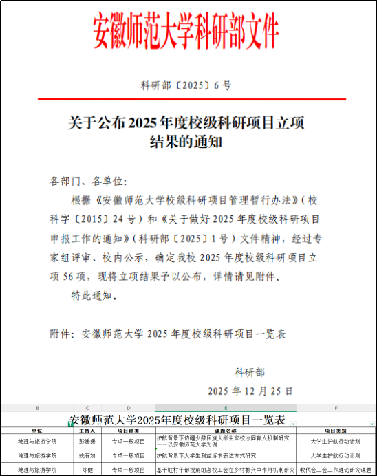 学院深化“三全育人”,以“教学管”队伍为依托,联动“四个课堂”,学生综合素质全面跃升。学科竞赛成绩斐然,学生共获得“挑战杯”国赛奖项、全国大学生GIS应用技能大赛一等奖、全国师范生教学技能竞赛一等奖等省级以上奖项400余项,其中“渔见新生”项目团队获第十九届“挑战杯”国家级二等奖,创造学院历史最好成绩。社会实践与志愿服务品牌响亮,“情系川皖”支教团队接力十五载获《中国教育报》报道,年均组建国家级、省级重点实践团队二十余支,事迹屡登主流媒体。创新创业氛围浓厚,学生获批国家级大创项目数十项,学生一作发表论文数量逐年提升,本科生在遥感领域顶级学术期刊《Remote Sensing of Environment》发表论文。校园文化丰富多彩,在校运会、球类竞赛、艺术展演中屡获佳绩,学生身心得到全面发展。多人获“中国大学生自强之星标兵”新时代青年先锋奖、安徽省青年五四奖章等国家级、省级表彰。