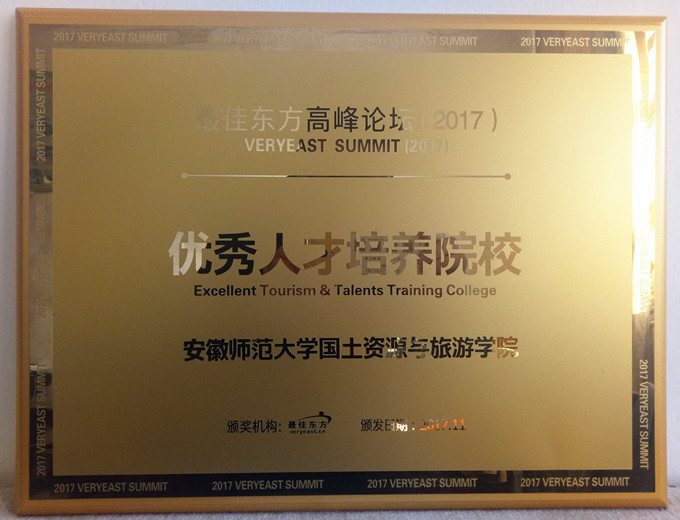 本网讯(国旅学院 赵 将)2017年11月3日,由旅游业界著名专业招聘平台最佳东方主办,最佳东方HR公社、先之教育、迈点、乔邦猎头联合协办的“2017最佳东方高峰论坛暨第四届旅游服务业最佳雇主颁奖盛典”在杭州未来科技城国际会议中心盛大启幕。我校国旅学院获得“优秀人才培养院校”称号,国旅学院党委副书记乔静、旅游管理专业本科生辅导员吴燕、赵将受邀参会并接受牌匾。