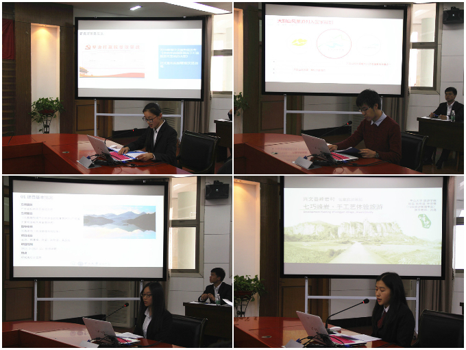 随后,两校学生代表在双方领导老师的见证下进行校旗互赠仪式。我校国旅学院2014级旅游管理专业本科生程梦岚同学和中山大学旅游管理与规划系本科生孟令坤同学分别介绍了两校学生大学生涯规划的基本情况。在科技文化和社会实践成果展示环节中,国旅学院本科生分别展示了2016年“创青春”全省大学生创业大赛银奖作品——《“田园交响曲”新型乡村旅游公益创业项目》,2017年“井冈情·中国梦”全国大学生暑期实践季课题成果——《基于居民感知的旅游扶贫效应研究:以井冈山为例》,第七届全国大学生红色旅游创意策划大赛一等奖作品:《峰回路转》和《红恋心电图》等作品;中山大学旅游学院学生代表分别展示了广东省大学生创新训练计划项目《大数据视域下的旅游目的地情感评价》、《基于GIS的2016年河北省雾霾影响因子分析》以及“兴文杯”全国高等院校旅游创新策划大赛二等奖作品——《七巧峰岩·手工体验旅游》等学术研究和创意策划成果。活动的最后,两校师生还就学习生活等方面的问题进行了互动,现场气氛轻松活泼。