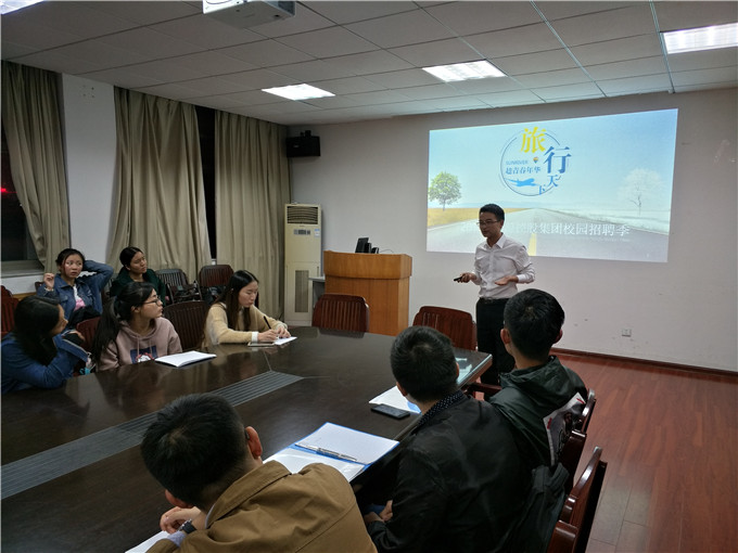 招聘会于晚上8点开始。宣讲会上,李老师先为同学们播放了集团的宣传片,让大家对祥源控股集团有了初步的了解。之后,分别从集团概况、成员企业、企业项目、色情动漫、成长通道、培养机制等几个方面展开介绍,详细说明了所招聘的各个岗位的工作职责、工作环境条件和工作内容。此外,李老师全面介绍了墨西哥探险乐园实训项目。在交流环节中,同学们自由提问,李老师为大家一一解答。