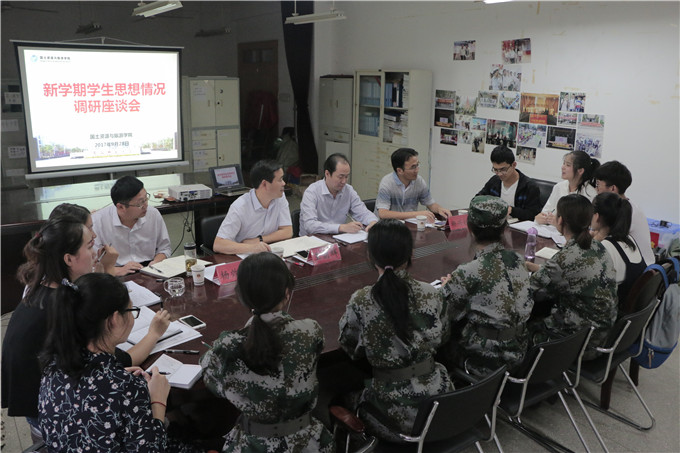 本网讯(国旅学院 赵 将)为贯彻落实全国高校思想政治工作会议精神,及时了解开学初学生思想状况,研究解决学生在思想、学习和生活等方面存在的实际突出问题。28日下午,国旅学院召开新学期师生座谈会,活动根据专业属性分成地理土管、旅游酒店、地信城规三个分会场。国旅学院领导班子成员、各专业负责人、全体专兼职辅导员以及学生代表参加了座谈会。