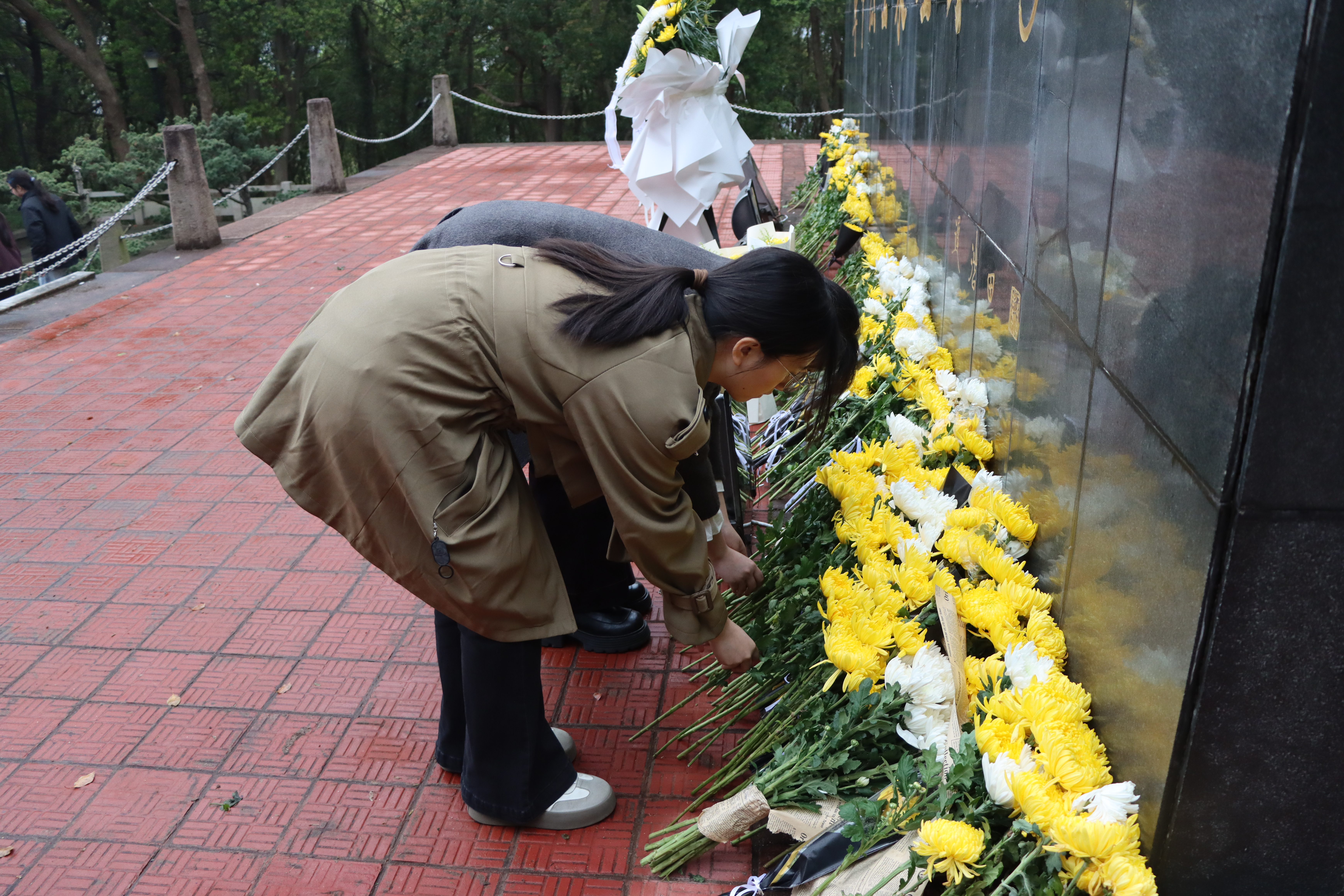 全体师生在细雨中前行至革命烈士纪念碑前。正面镌刻着“革命烈士永垂不朽”的纪念碑巍然矗立,诉说着那段峥嵘岁月。在庄严肃穆的气氛中,全体师生向革命烈士默哀三分钟,行三鞠躬礼,深切缅怀为民族解放和新中国成立英勇献身的革命先烈。随后,师生代表依次缓步上前敬献鲜花,素洁的花朵静静绽放,寄托着对先烈的深切缅怀与崇高敬意。同学们纷纷表示,通过此次活动,更加深刻理解了今天的幸福生活来之不易,将以革命先烈为榜样,珍惜韶华、勤奋学习,将小我融入大我,把青春献给祖国,不负青春、不负韶华、不负期待。
