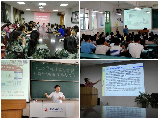 学院还邀请了北京师范大学博士生导师、国家杰出青年基金获得者、洪堡学者张强教授为2017级地理科学专业同学做《地理学:昨天、今天与明天》专场报告,详细阐述了地理学的发展趋势和人类面临的地理问题。东南大学智慧城市研究院副院长、建筑学院城市规划系教授、博士生导师杨俊宴也应邀为2017级城乡规划新生带来《中国城镇化的转型和规划专业的历史挑战》专场报告。学院还邀请了中科院李正强研究员为2017级地理信息科学专业新生做《卫星环境遥感及其应用》专场报告,为同学们全面展示了遥感的魅力,李正强研究员还送给新生四句箴言:“学科前沿,国家需求,广阔天地,大有可为”,为新生们打了一剂强心针。